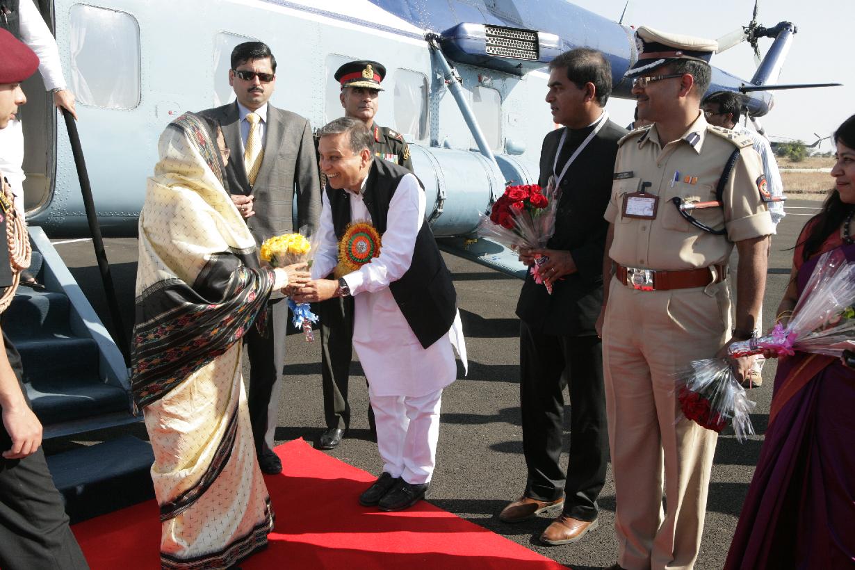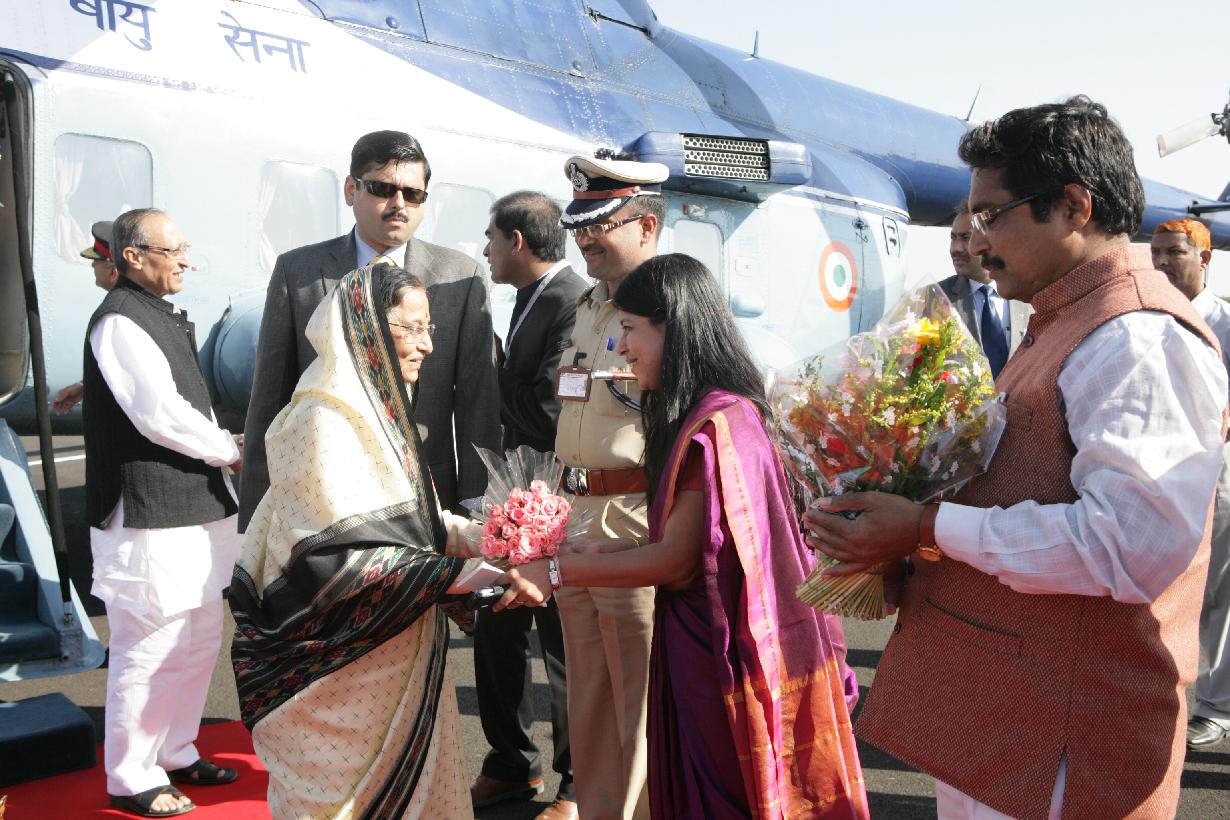 | Caption: | The President of India, Smt Pratibha Devisingh Patil arriving at Amravati Helipad in Maharashtra on Jan 06, 2010 |