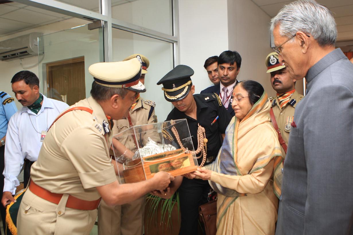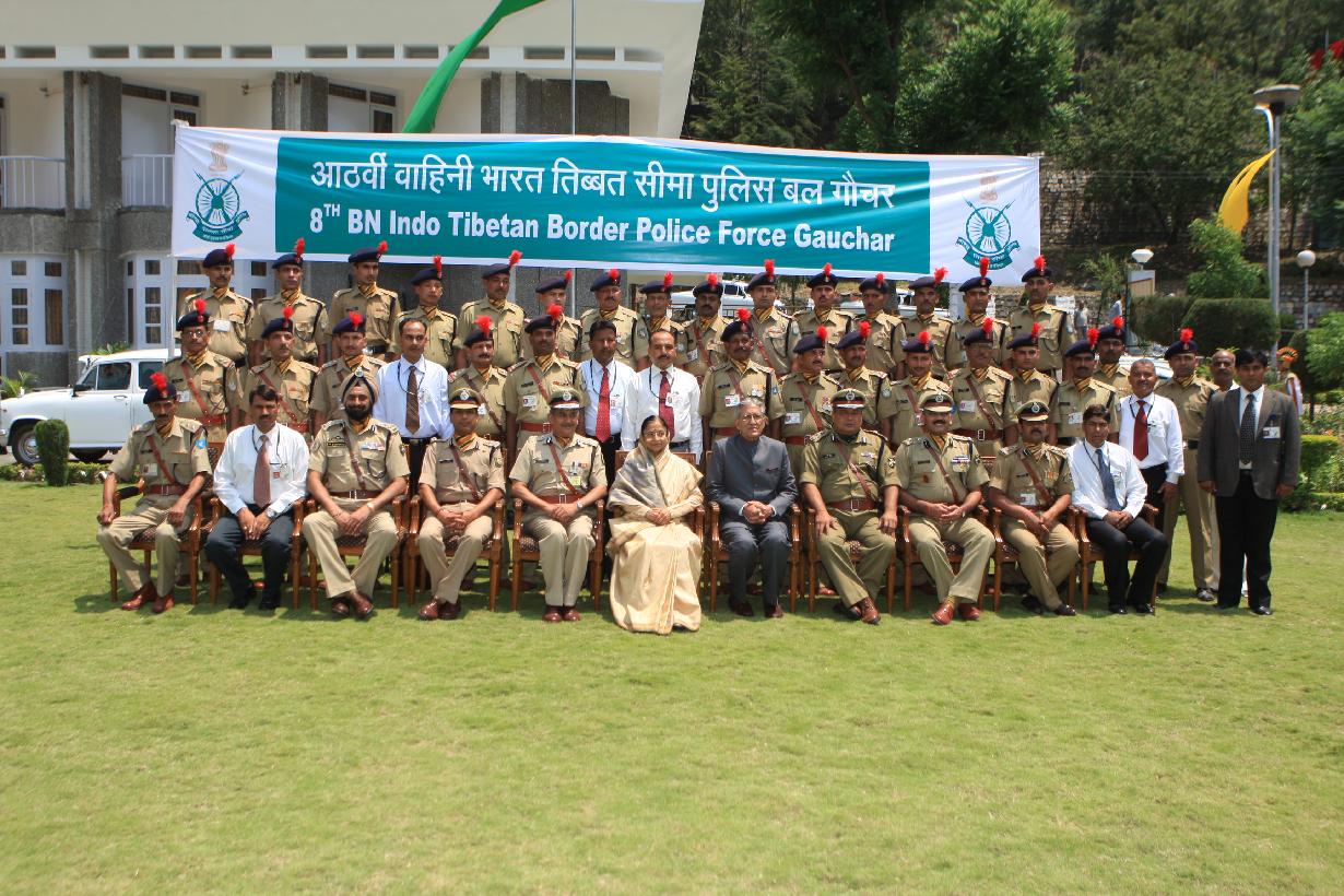 | Caption: | The President of India, Smt Pratibha Devisingh Patil posing for a Group Photograph with ITBP Gauchar at Dehradun on July 05, 2009 |