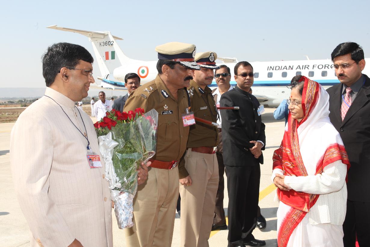 | Caption: | The President of India, Smt Pratibha Devisingh Patil before departure from Auragabad Airport in Maharashtra on Feb 10, 2008 |