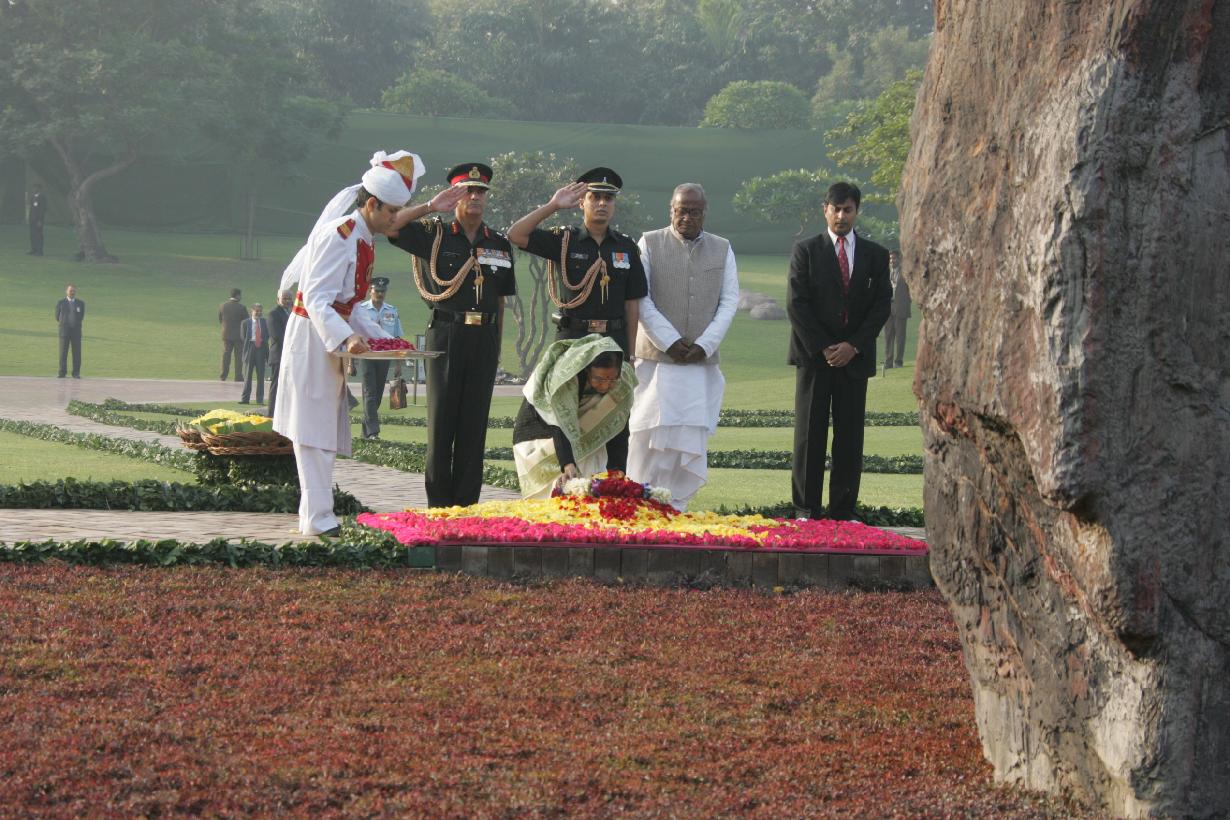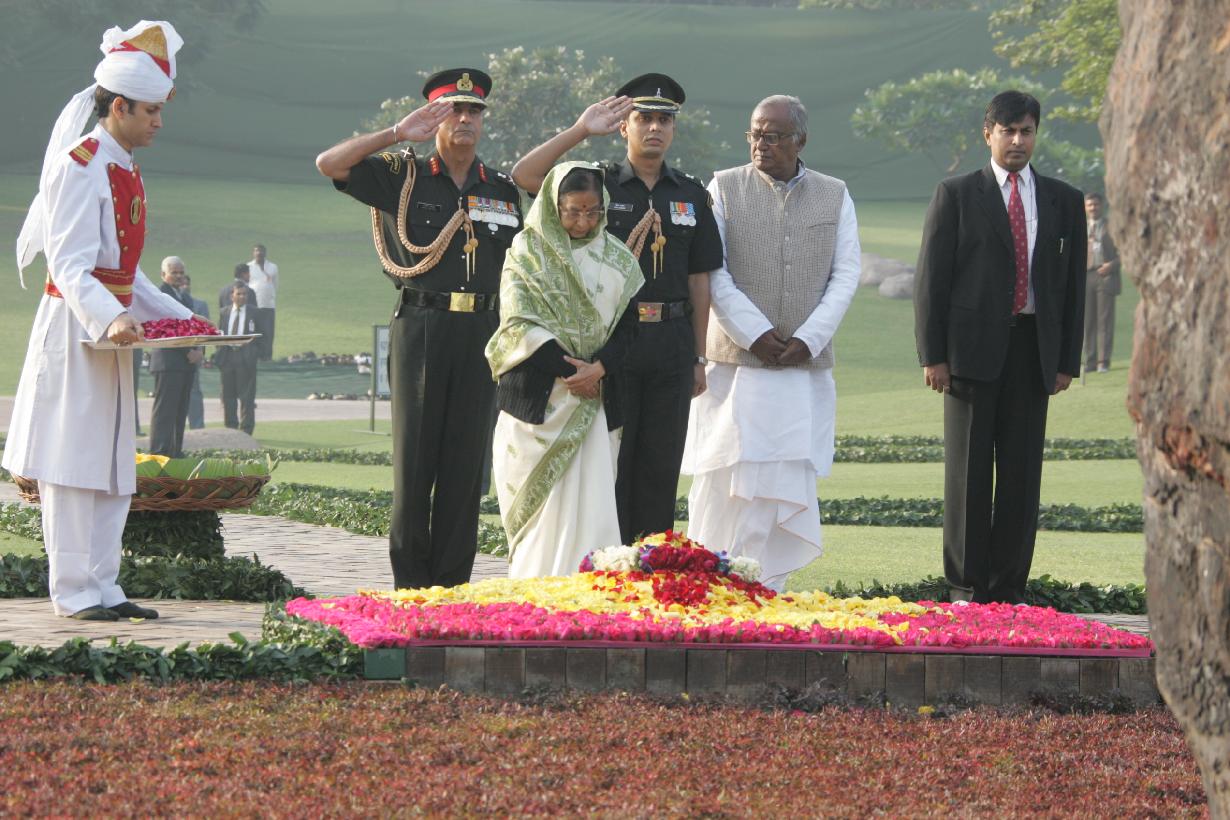 | Caption: | The President of India, Smt Pratibha Devisingh Patil paying floral tributes at the Samadhi of the Former Prime Minister of India, Late Smt Indira Gandhi on her 92nd Birth Anniversary at Shakti Sthal in New Delhi on Nov 19, 2009 |