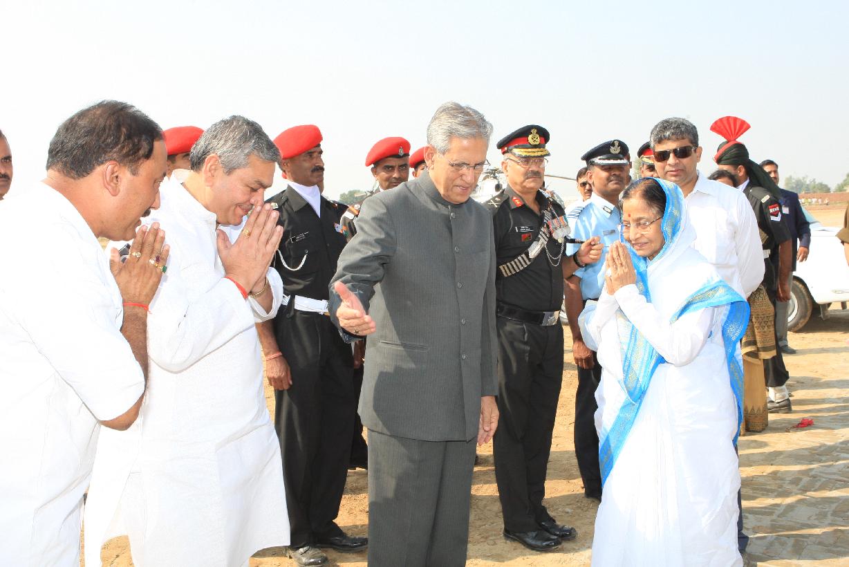| Caption: | The President of India, Smt Pratibha Devisingh Patil before departure from Mathura Helipad in Uttar Pradesh on Nov 06, 2009 |