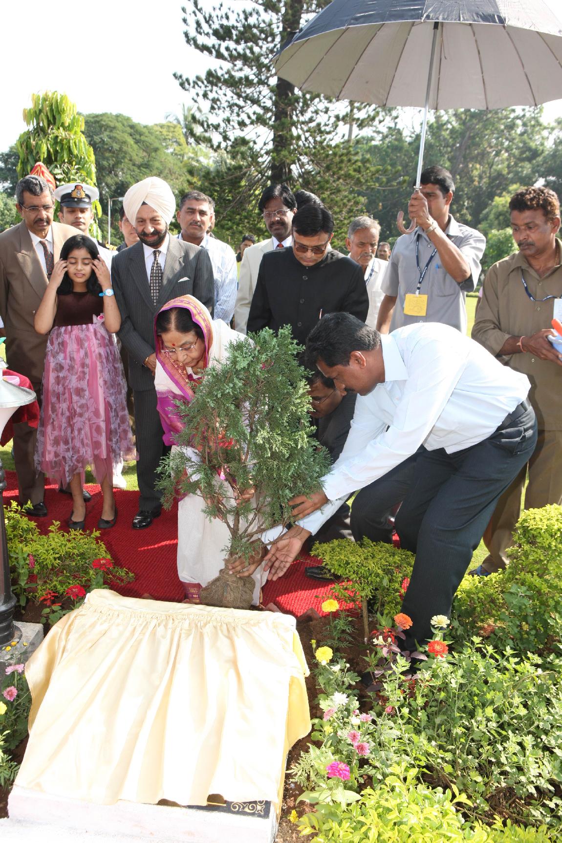 | Caption: | The President of India, Smt Pratibha Devisingh Patil planting a sapling at Raj Bhavan in Goa on Nov 24, 2009 |