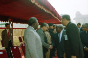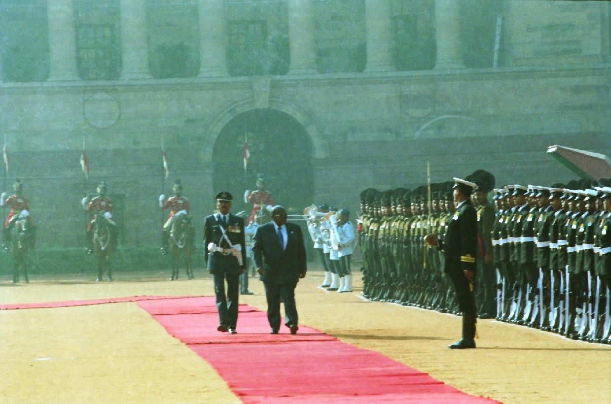 | Caption: | The President of India, Dr A P J Abdul Kalam at the Ceremonial Reception of the President of the United Republic of Tanzania, HE Mr Benjamia William Mkapa and his wife Mrs Anna Benjamin Mkapa at the Forecourt of Rashtrapati Bhavan in New Delhi on Dec 16, 2002 |