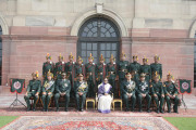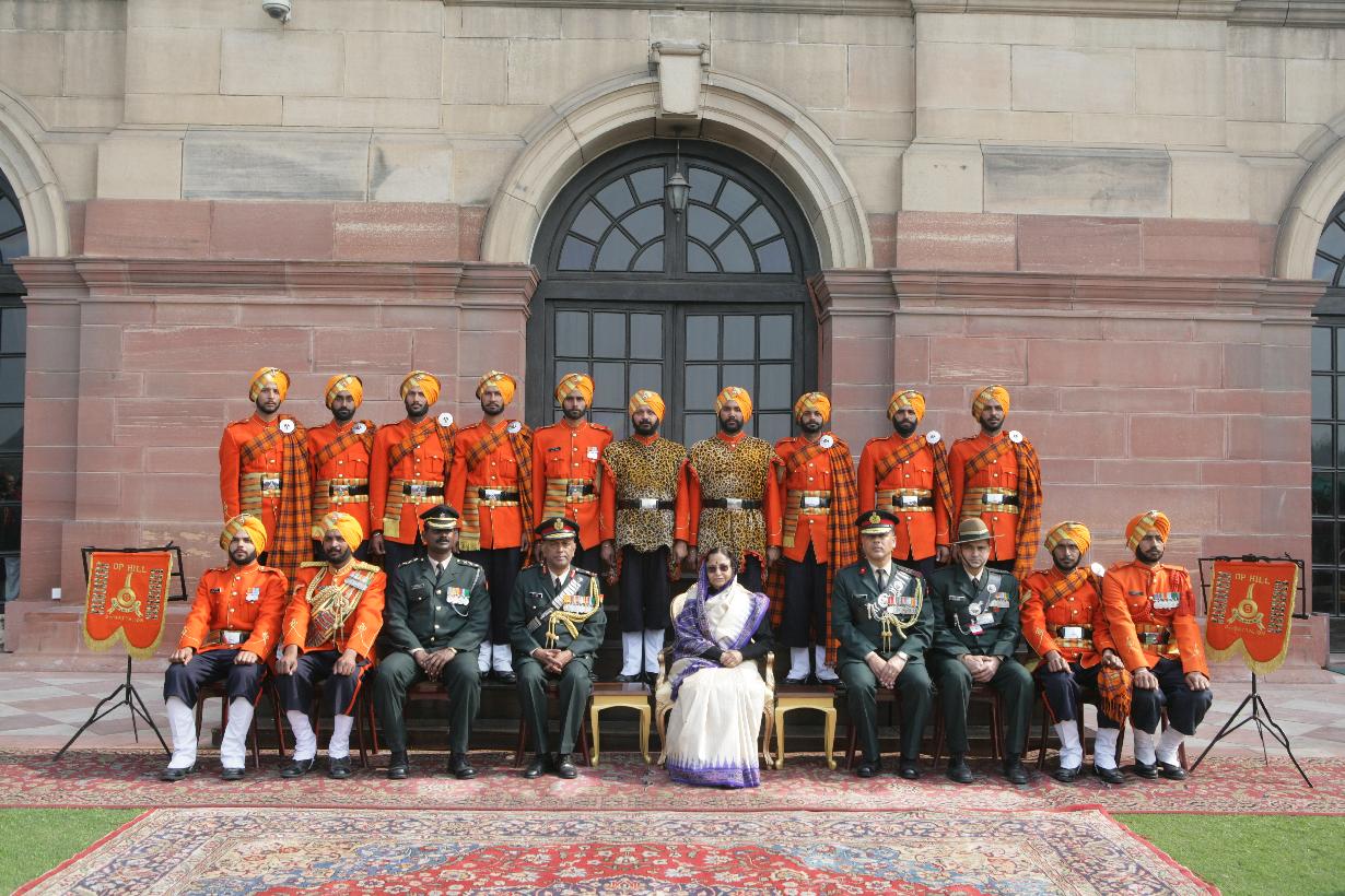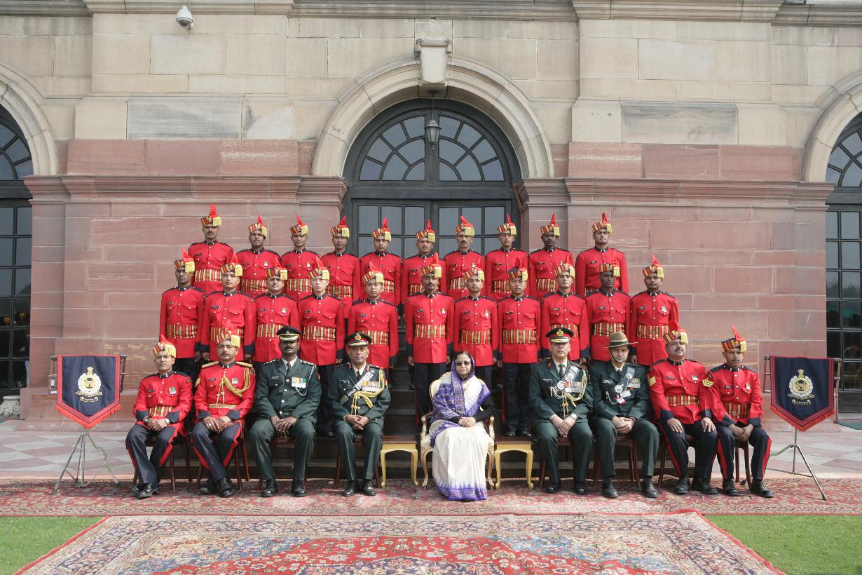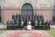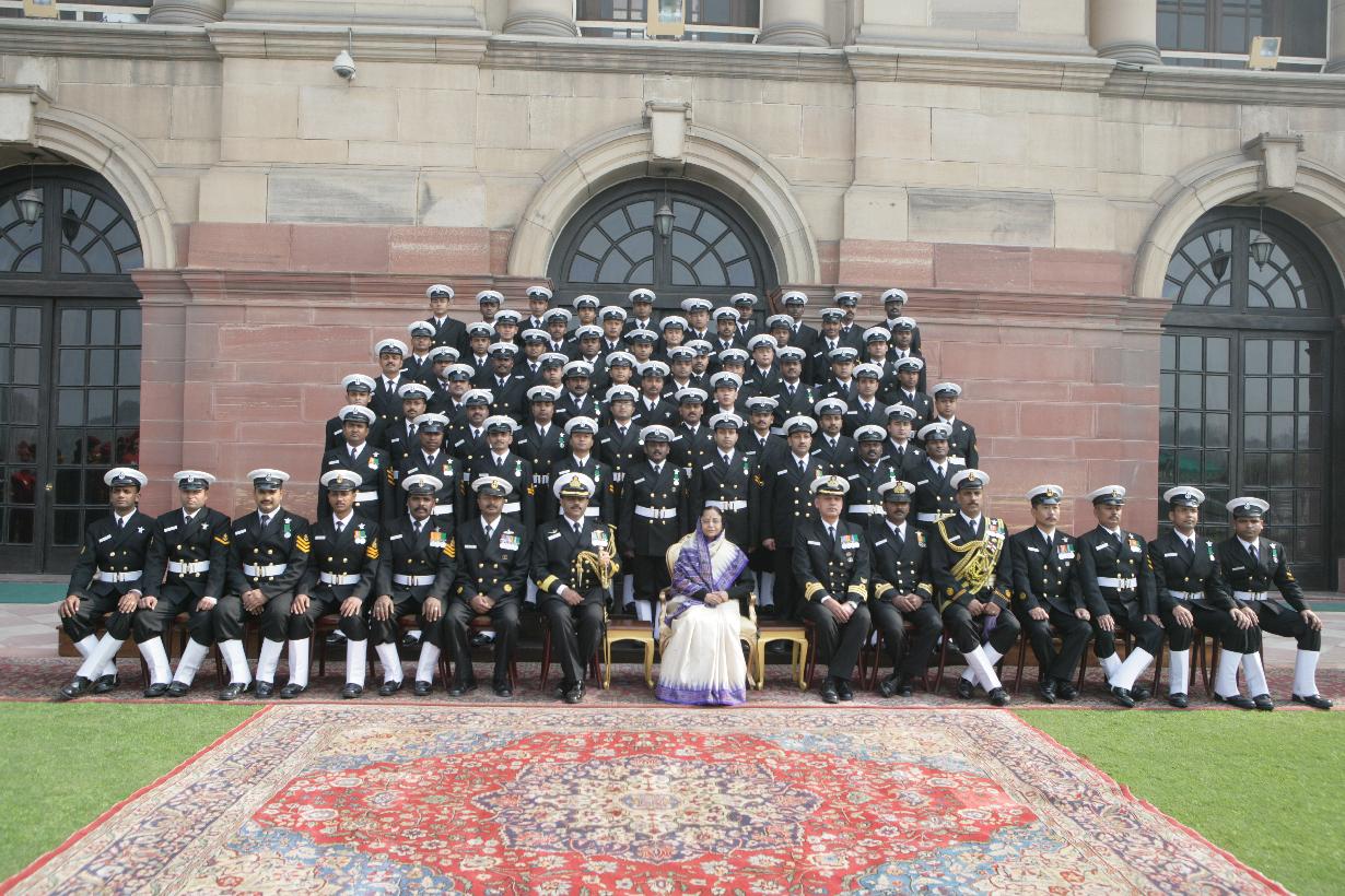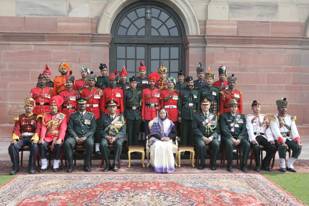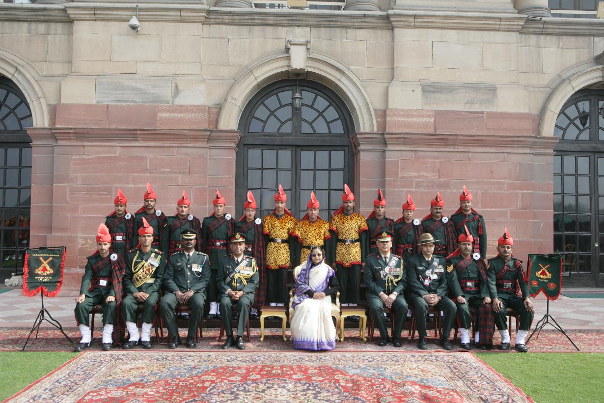 | Caption: | The President of India, Smt Pratibha Devisingh Patil posing for a Group Photographs with Tri Service Band Contingents at Rashtrapati Bhavan in New Delhi on Jan 30, 2010 |