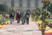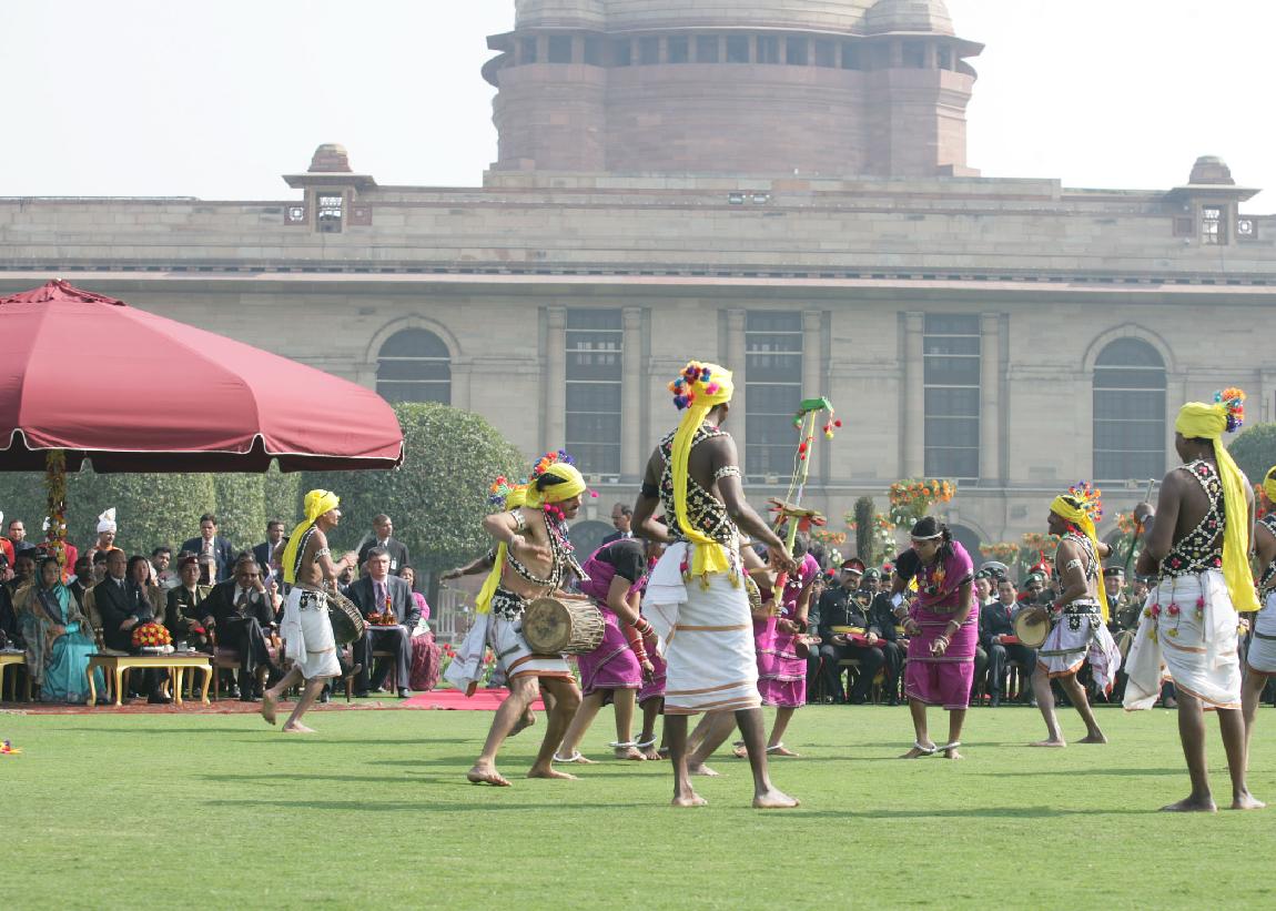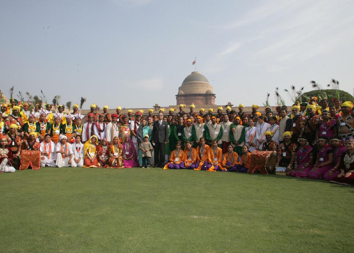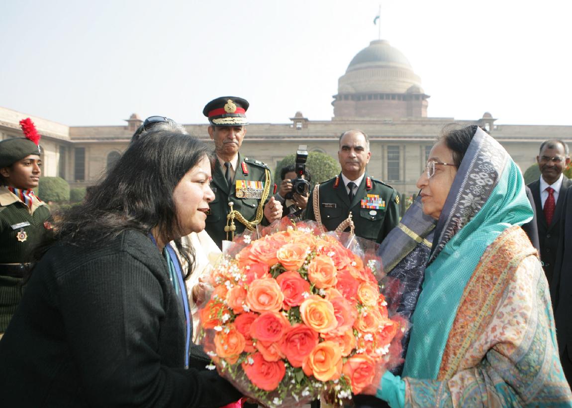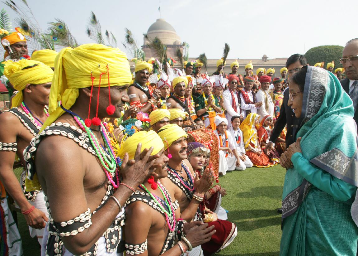 | Caption: | The President of India, Smt Pratibha Devisingh Patil interacting with the Group of Tribal Guest, Tableaux Artists, Tractor Drivers, NSS Volunteer at Rashtrapati Bhavan in New Delhi on Jan 27, 2010 |