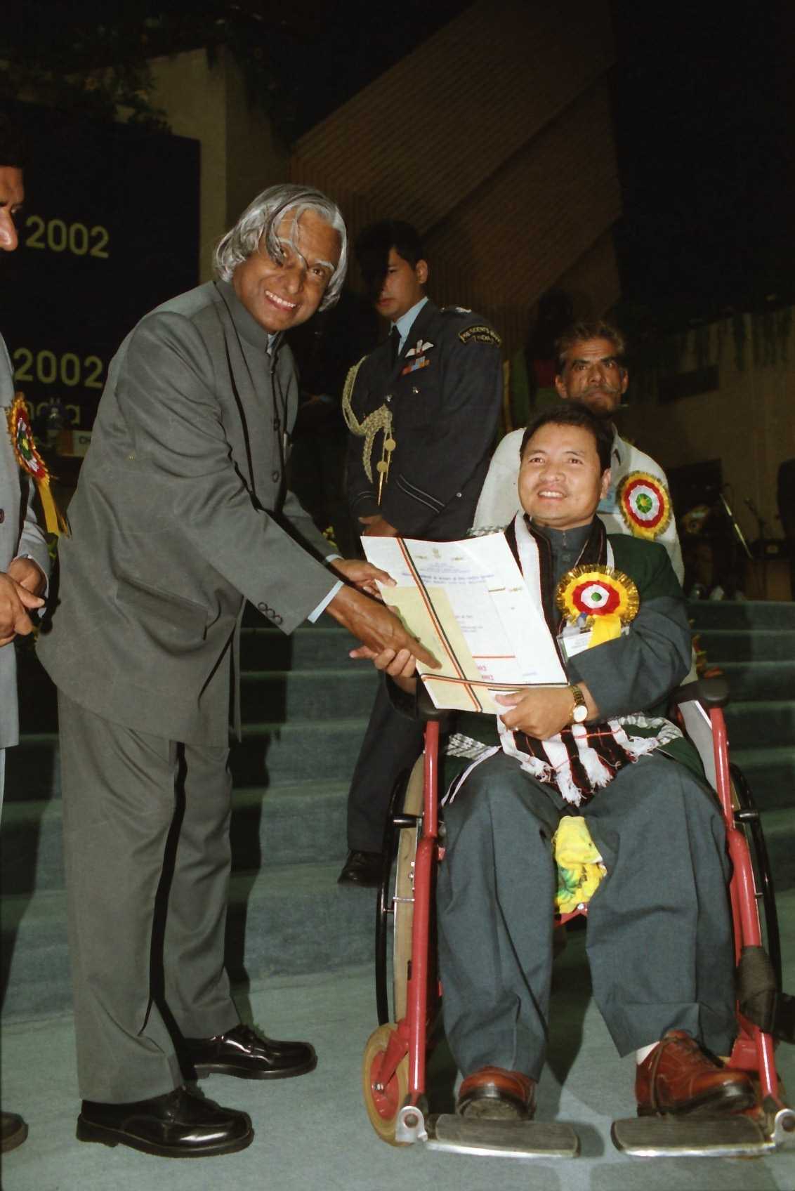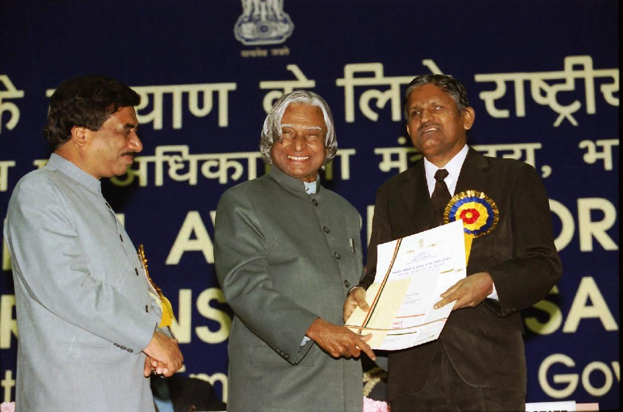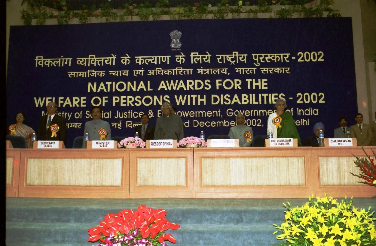 | Caption: | The President of India, Dr A P J Abdul Kalam presenting the National Awards on the International Day of Disabled at Vigyan Bhavan in New Delhi on Dec 03, 2002 |