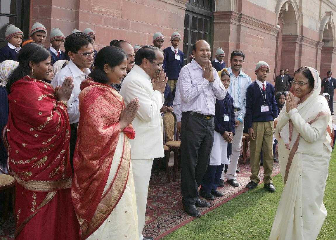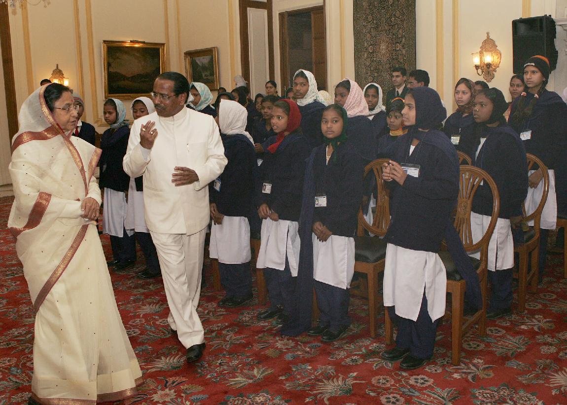 | Caption: | The President of India, Smt Pratibha Devisingh Patil interacting with the Students from Amravati District at Rashtrapati Bhavan in New Delhi on Jan 28, 2010 |