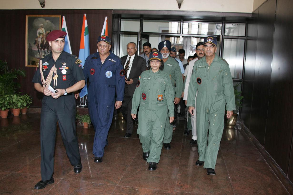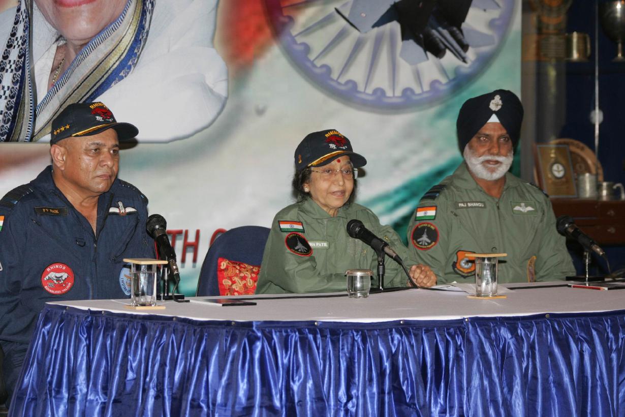| Caption: | The President of India, Smt Pratibha Devisingh Patil interacting with the Press during Air Force Station at Pune in Maharashtra on Nov 25, 2009 |