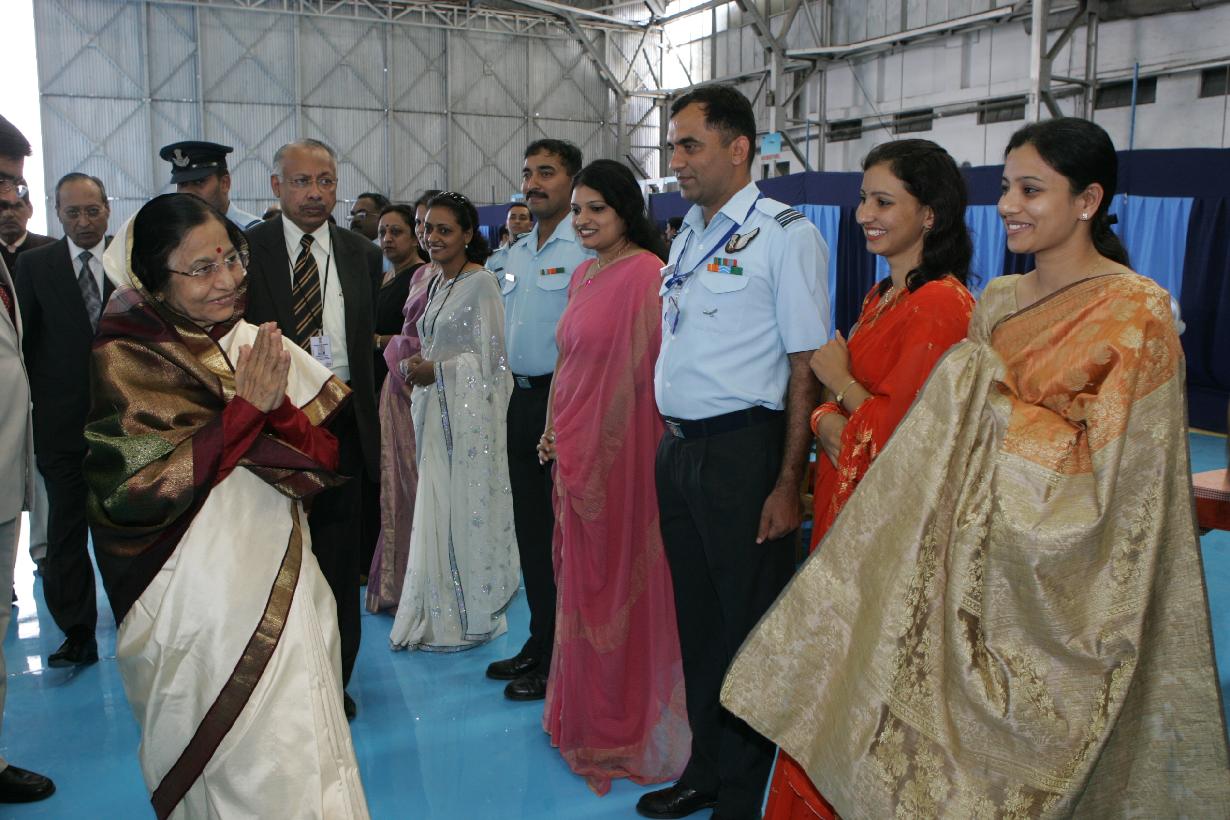 | Caption: | The President of India, Smt Pratibha Devisingh Patil interacting with Air Warriors during at Air Force Station of Pune in Maharashtra on Nov 25, 2009 |