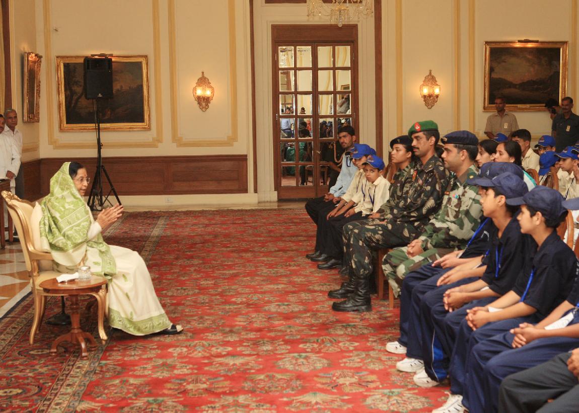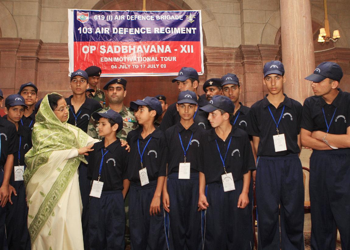 | Caption: | The President of India, Smt Pratibha Devisingh Patil interacting with the School Children from Jammu and Kashmir Under Operation Sadhbhavana - XII at Rashtrapati Bhavan in New Delhi on July 10, 2009 |