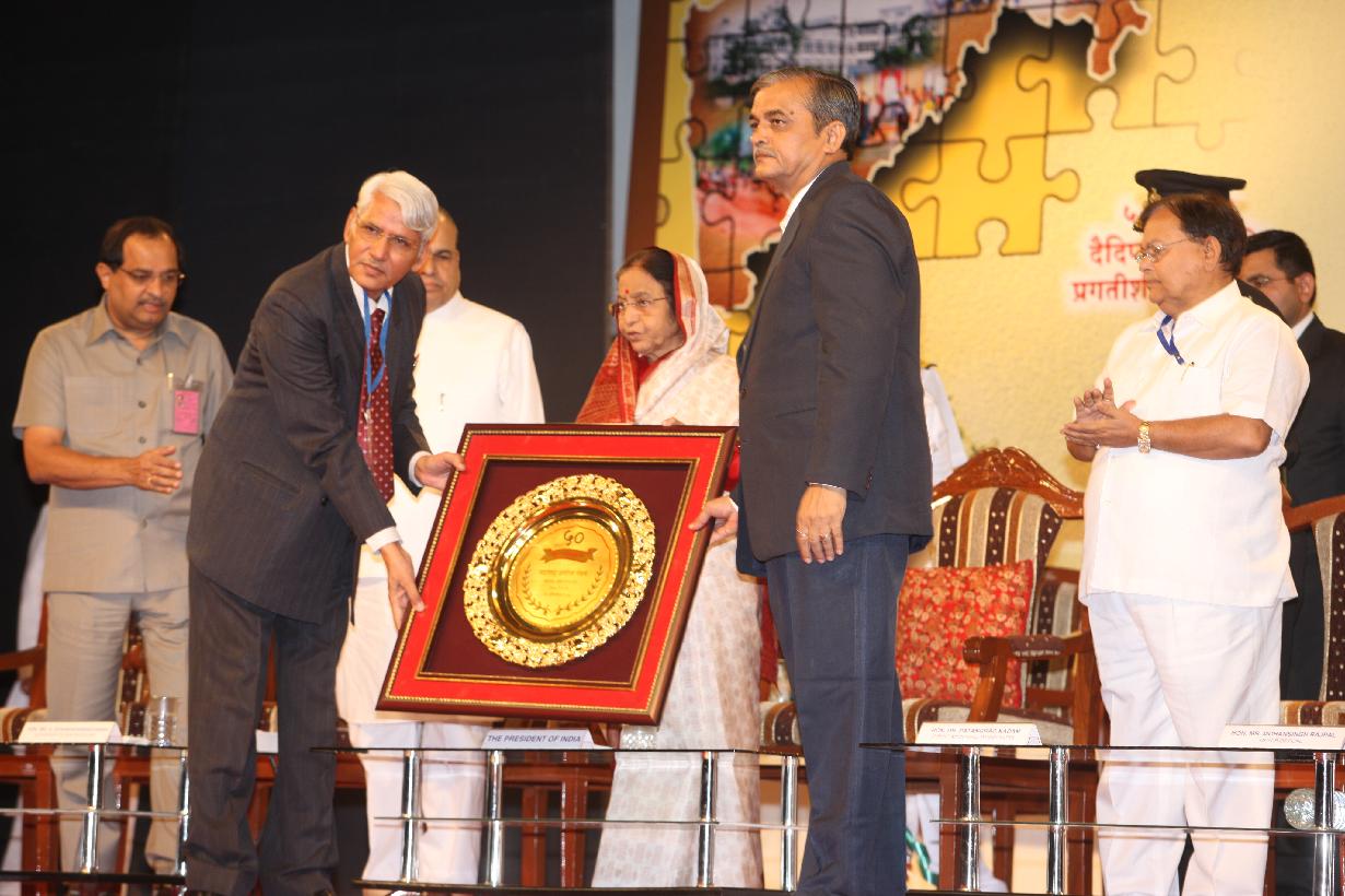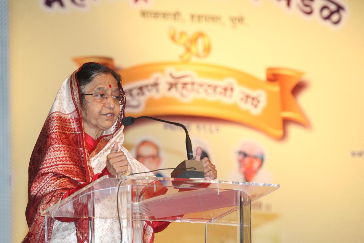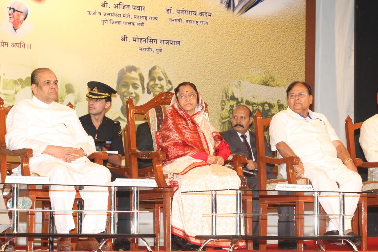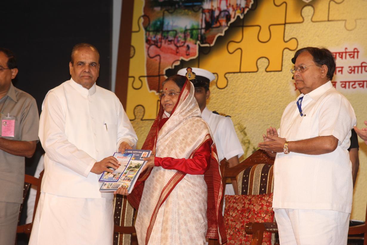 | Caption: | The President of India, Smt Pratibha Devisingh Patil at the Golden Jubilee Celebration of Maharashtra Arogya Mandal and receiving First Copy of the Maharashtra Arogya Mandal's Souvenir and biography on the Late Dr S T Gujar from the Governor of Maharashtra, Shri K Sankaranarayanan at Pune in Maharashtra on Oct 11, 2010 |