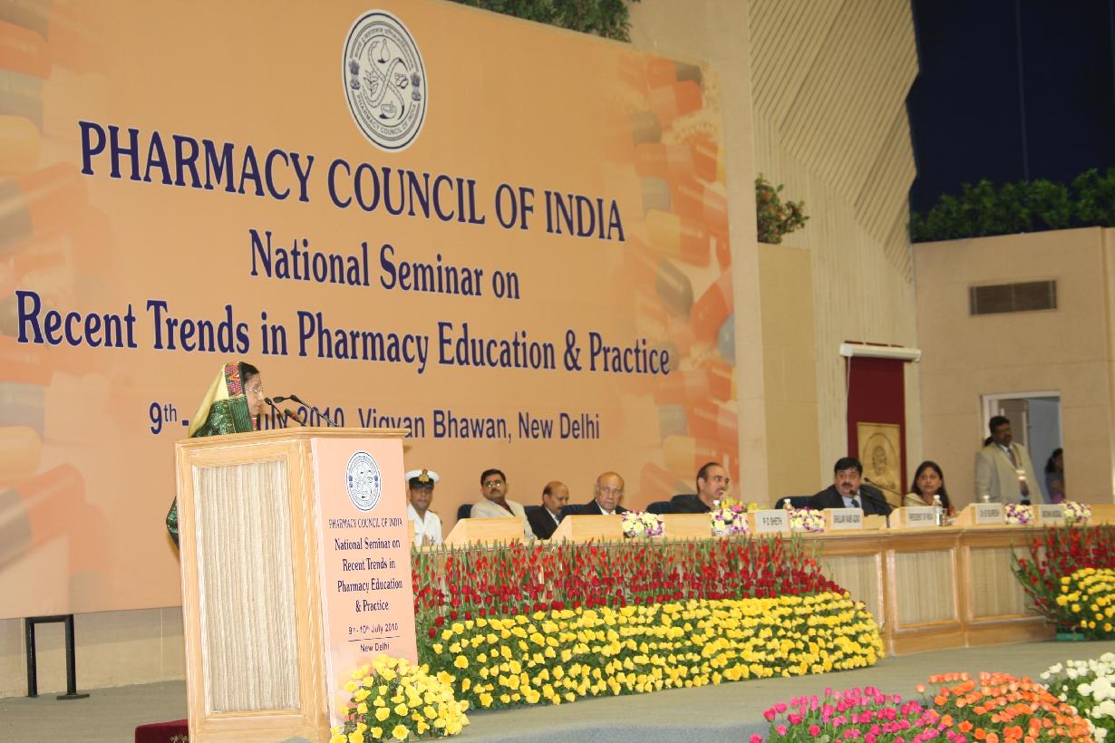 | Caption: | The President of India, Smt Pratibha Devisingh Patil inaugurating the National Seminar on Recent Trends in Pharmacy Education and Practice at Vigyan Bhavan in New Delhi on July 09, 2010 |