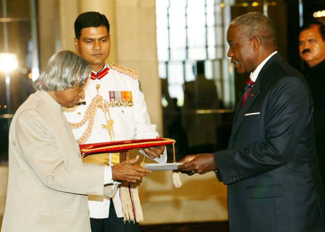 | Caption: | The Ambassador-Designate of the Cote d'lvoire to India HE Mr Gilbert Bleu Laine presenting his credentials to the President of India, Dr A P J Abdul Kalam at the Ashok Hall of Rashtrapati Bhavan in New Delhi on Sep 29, 2004 |