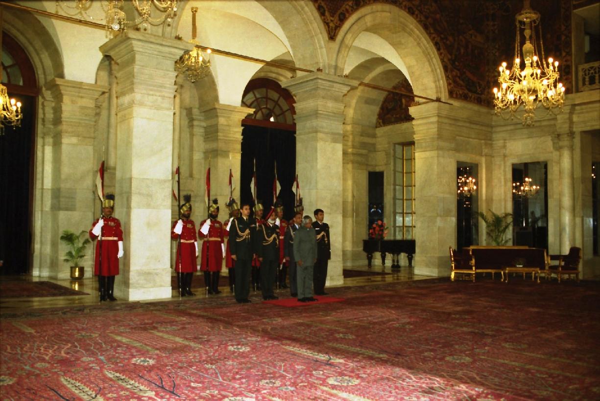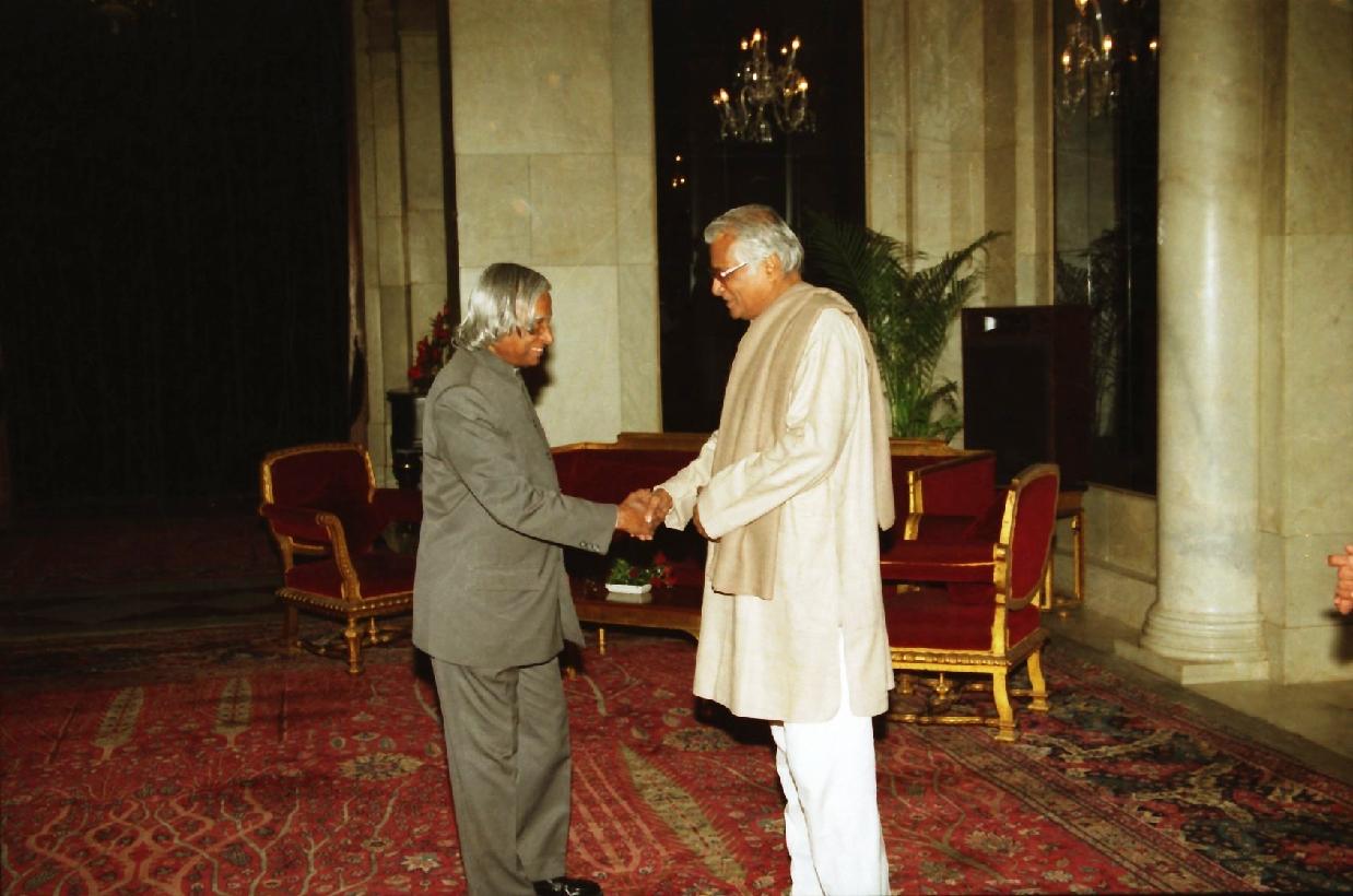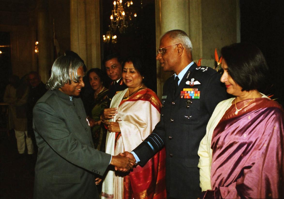 | Caption: | The President of India, Dr A P J Abdul Kalam at the Farwell Lunch to the PVSM, AVSM, VSM, ADC, Chief of Army Staff, General S Padmanabhan and Smt Roopa Padmanabhan at the Banquet Hall of Rashtrapati Bhavan in New Delhi on Dec 30, 2002 |