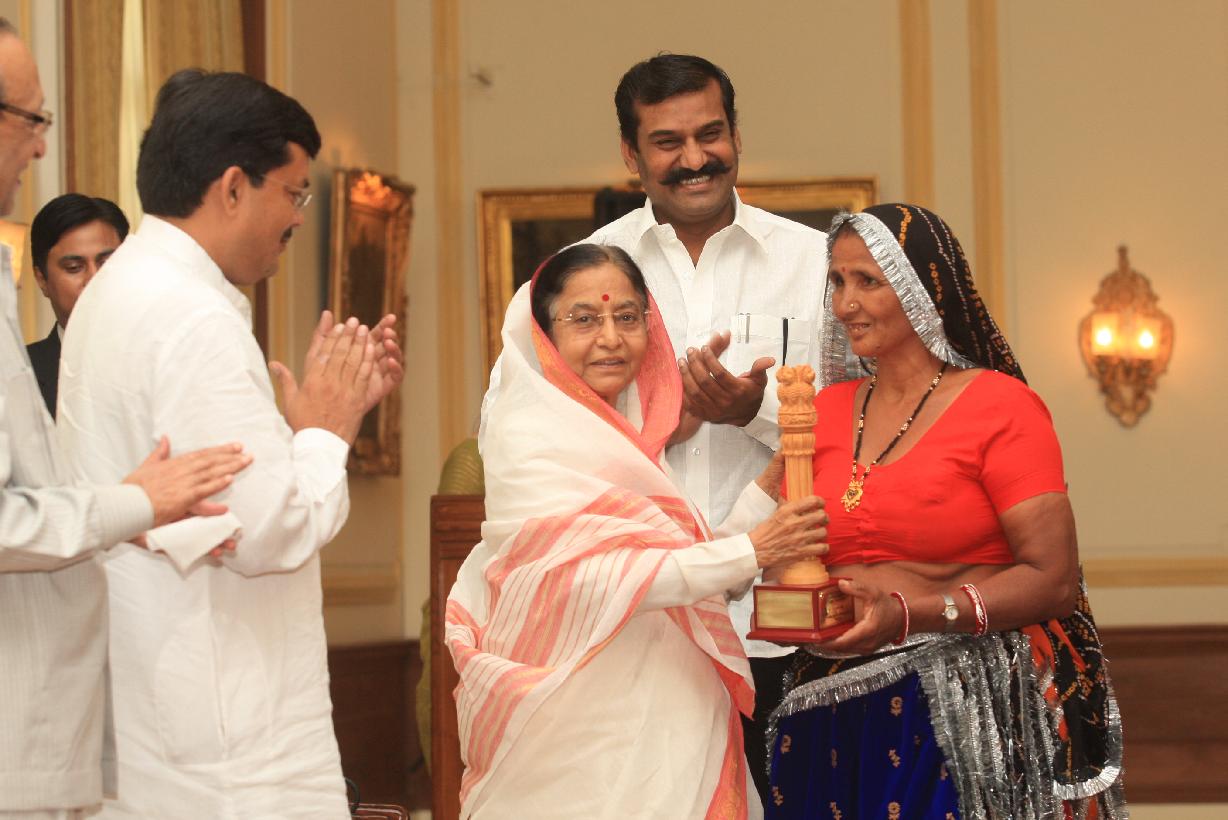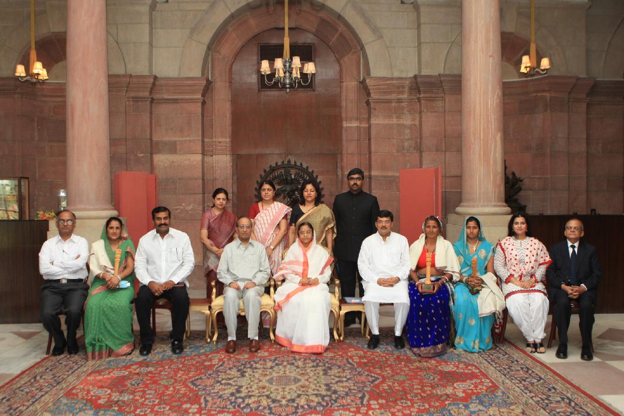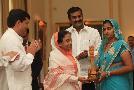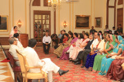 | Caption: | The President of India, Smt Pratibha Devisingh Patil felicitating Smt Roshani Devi, Smt Usha Devi and Smt Tripati Devi of Kothal Khurd Village, Mahendragarh District in Haryana for their work of Banning Consumption of liquor in Public Places in their village at Rashtrapati Bhavan in New Delhi on July 11, 2009 |