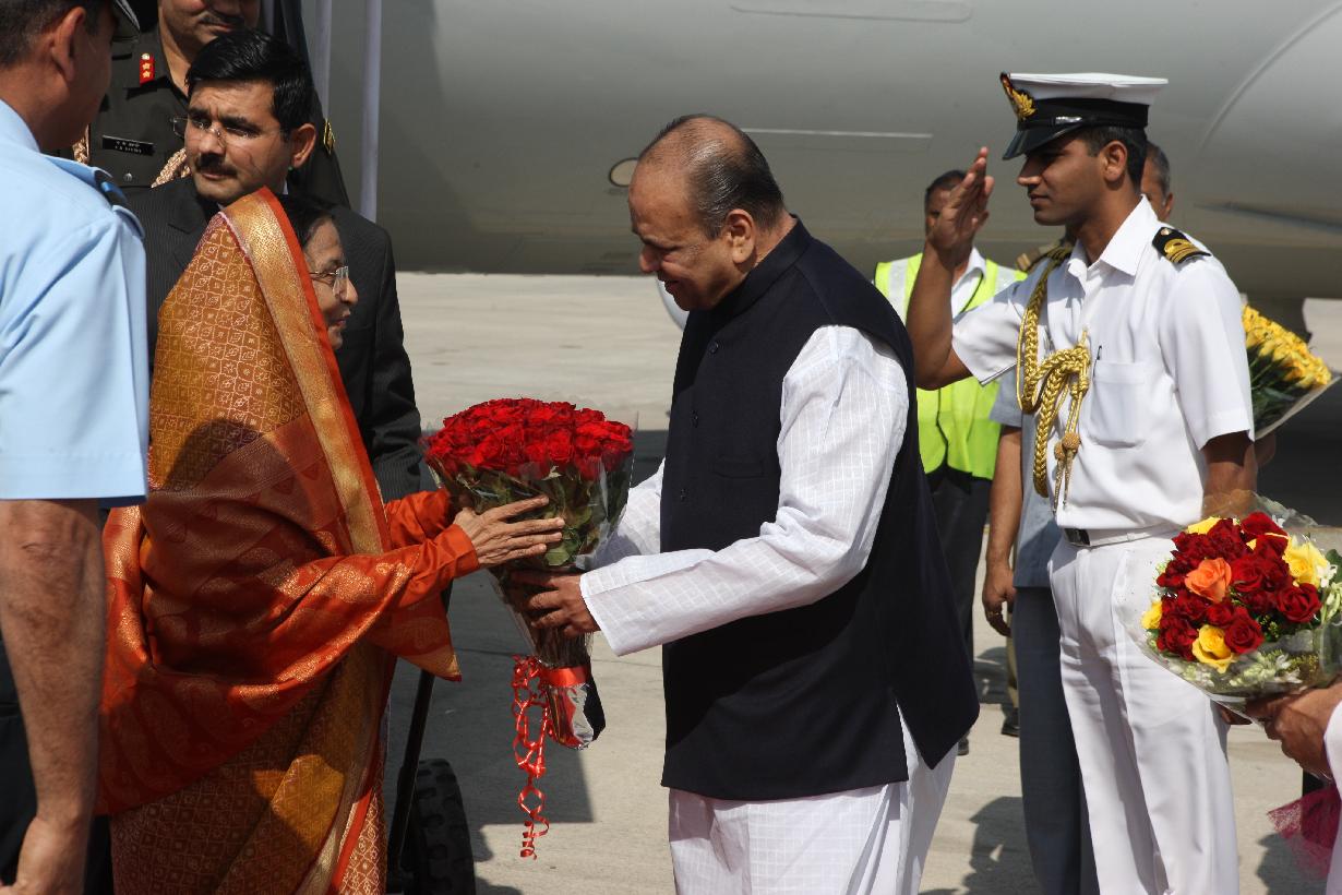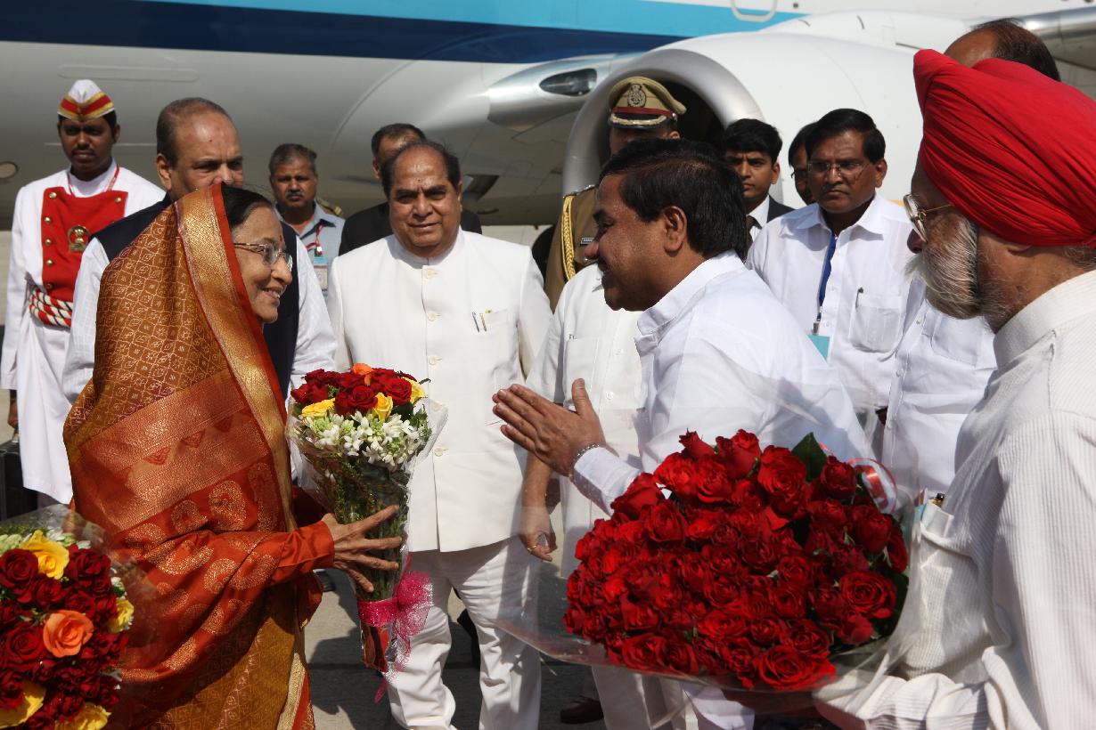 | Caption: | The President of India, Smt Pratibha Devisingh Patil being welcomed by the Governor of Maharashtra, Shri Kateekal Sankaranarayanan at Pune Airport in Maharashtra on Feb 27, 2010 |