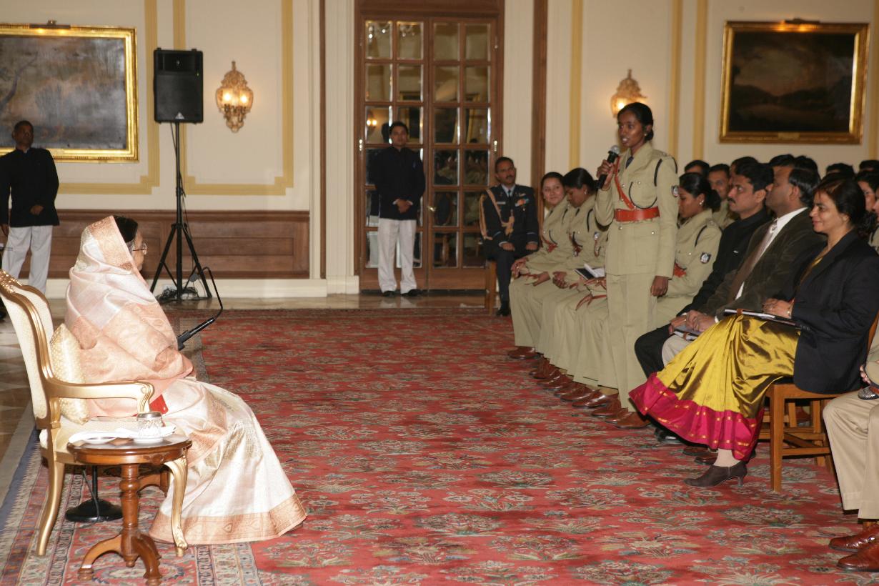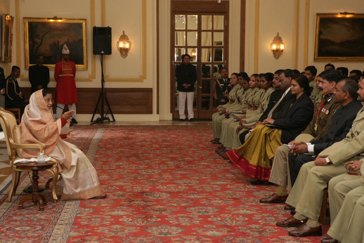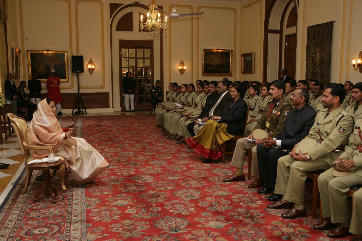 | Caption: | The President of India, Smt Pratibha Devisingh Patil interacting with the Probationer Officer of the 61st Batch of the Indian Police Service (IPS), that called on her at Rashtrapati Bhavan in New Delhi on Jan 04, 2010 |