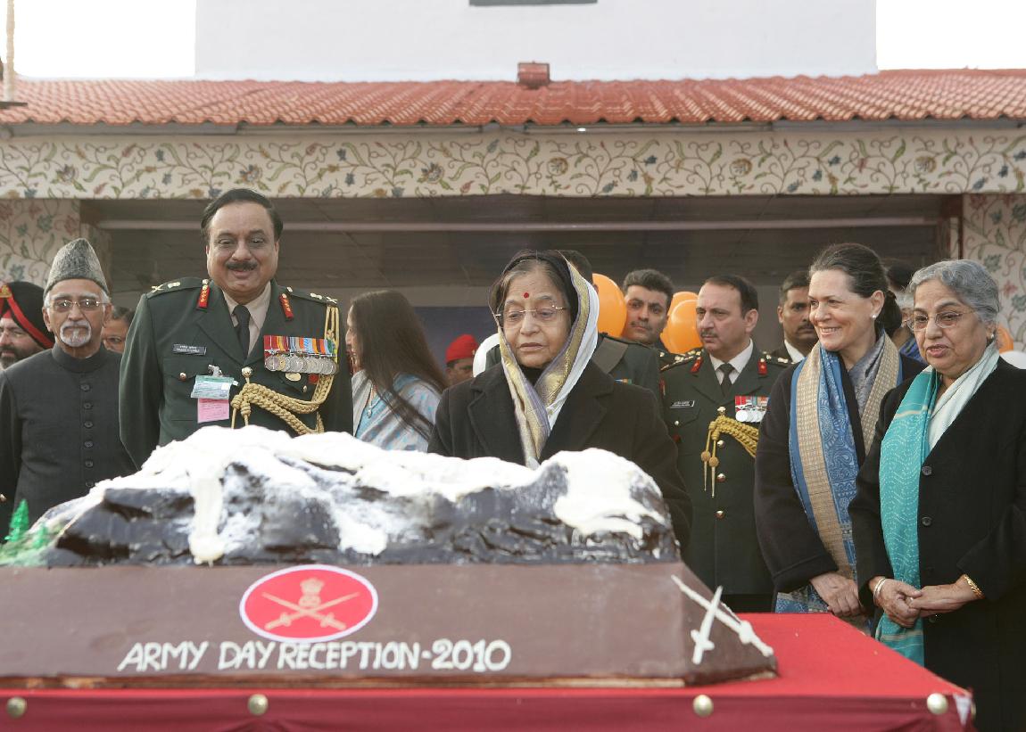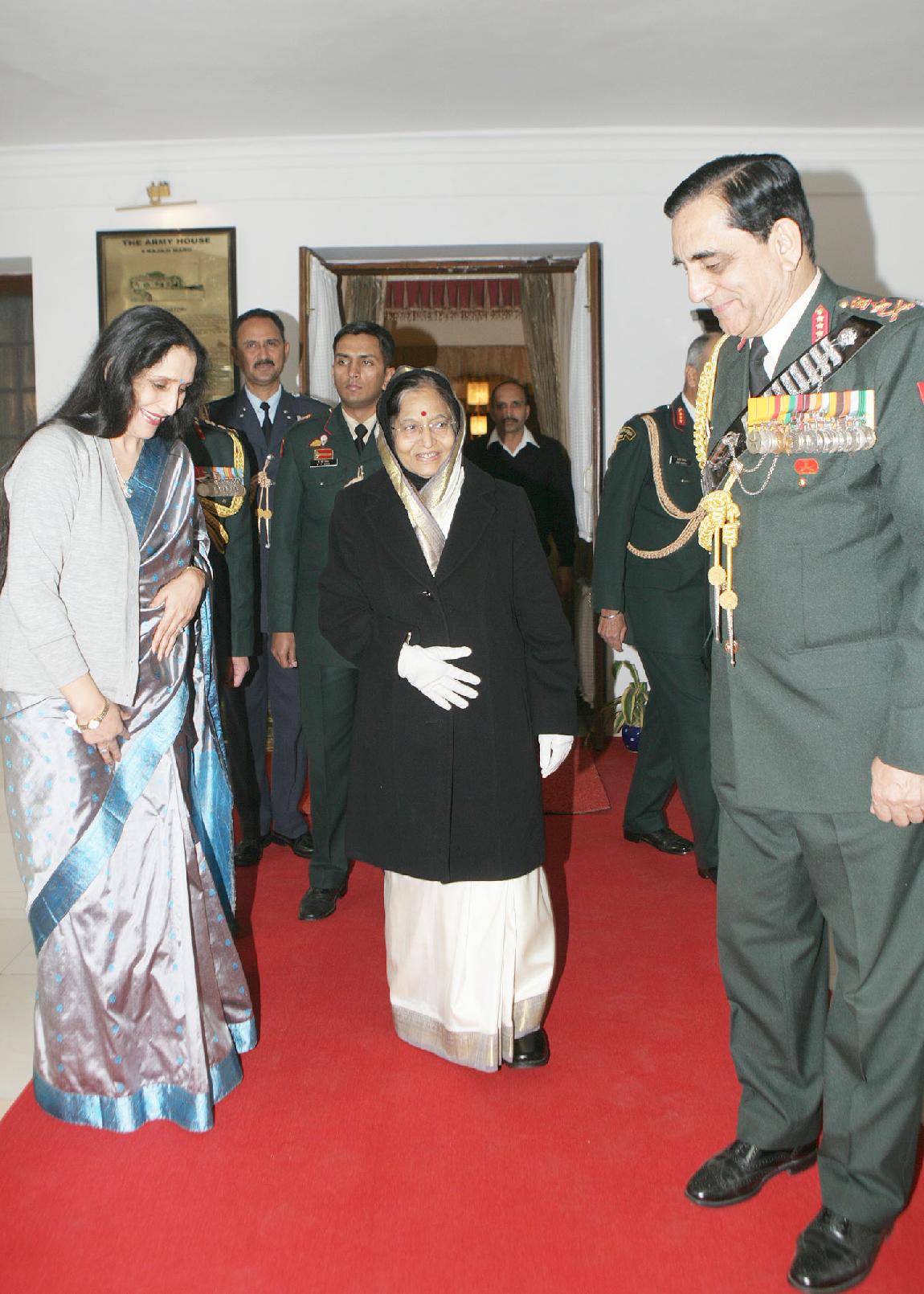 | Caption: | The President of India, Smt Pratibha Devisingh Patil during the Army Day Reception 2010 hosted at the Residence of the Chief of Army Staff, General Deepak Kapoor at Army House in New Delhi on Jan 15, 2010 |
