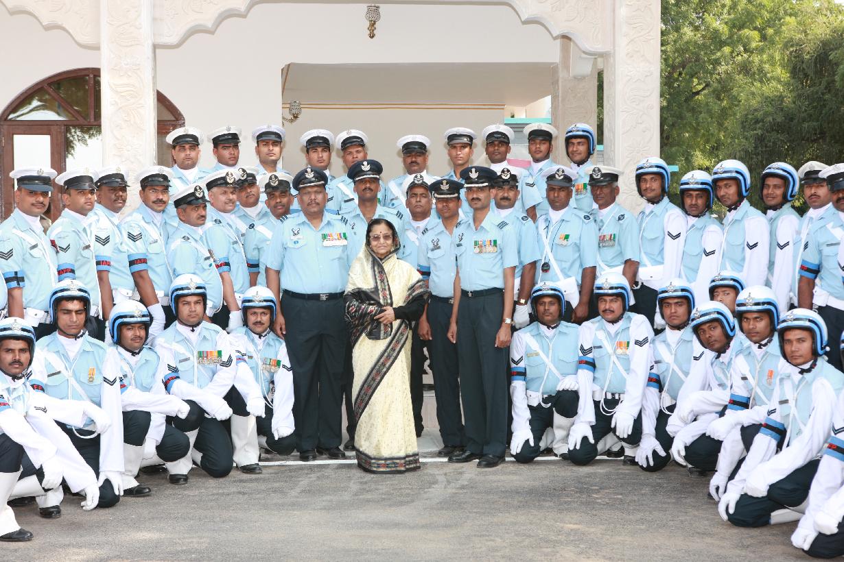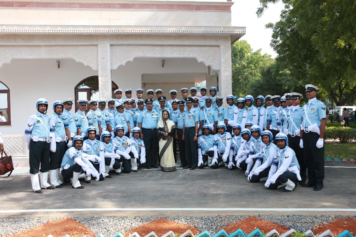 | Caption: | The President of India, Smt Pratibha Devisingh Patil posing for a Group Photograph with IAF Outriders at Gwalior in Madhya Pradesh on Nov 10, 2009 |