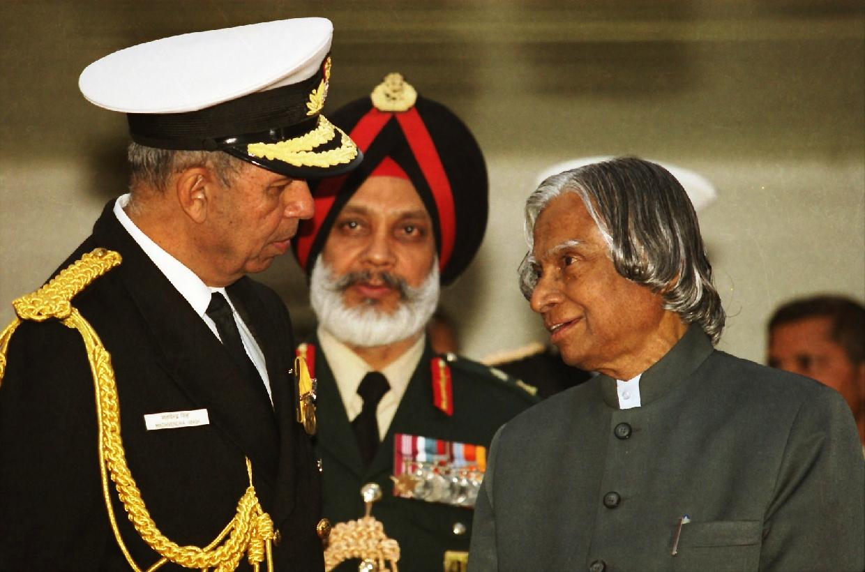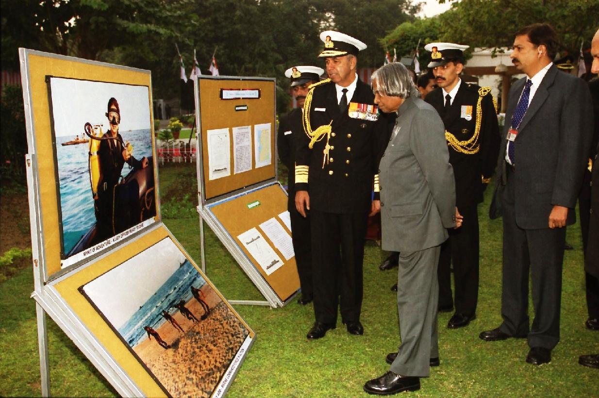 | Caption: | The President of India, Dr A P J Abdul Kalam at the Navy Day Reception on the occasion of the Navy Day at Navy House, 12, Rajaji Marg in New Delhi on Dec 04, 2002 |