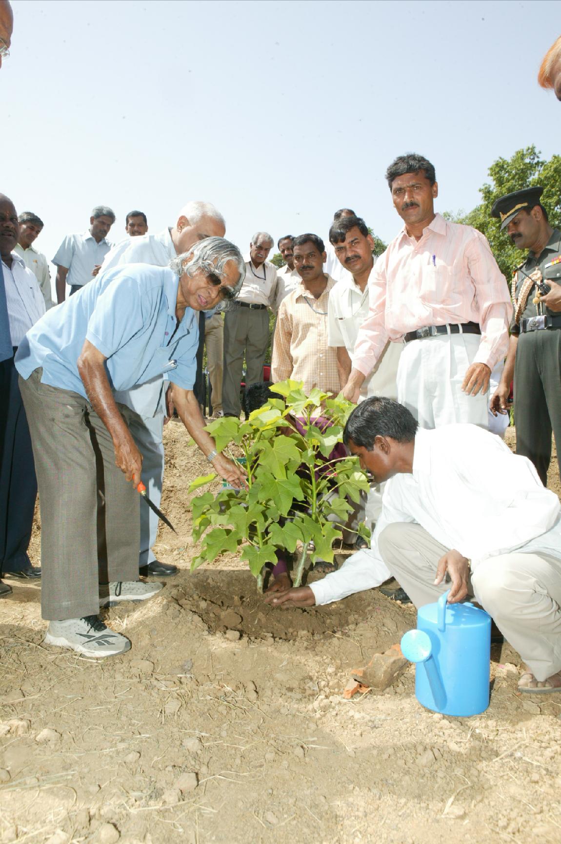 | Caption: | The President of India, Dr A P J Abdul Kalam inaugurating the Jatropha Plantation by planting a sapling at Dalikhana in New Delhi on Sep 04, 2004 |