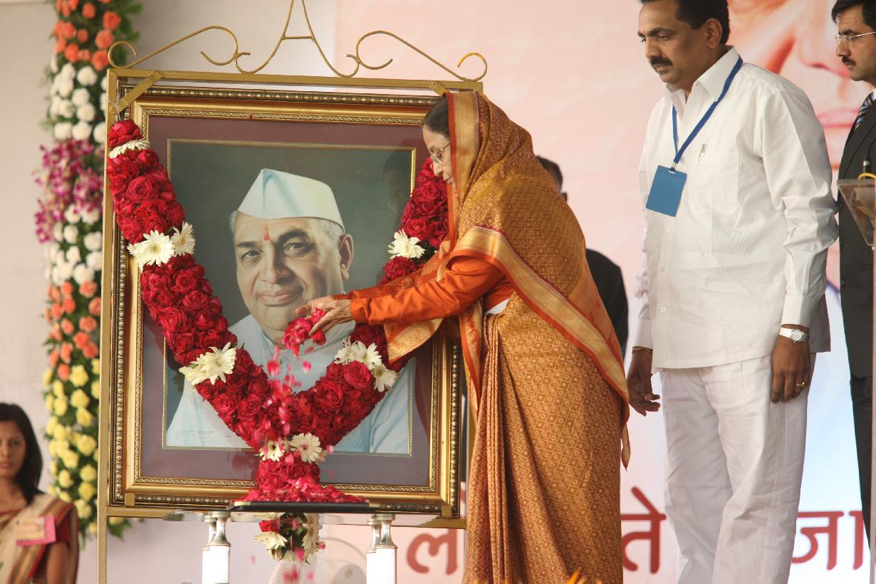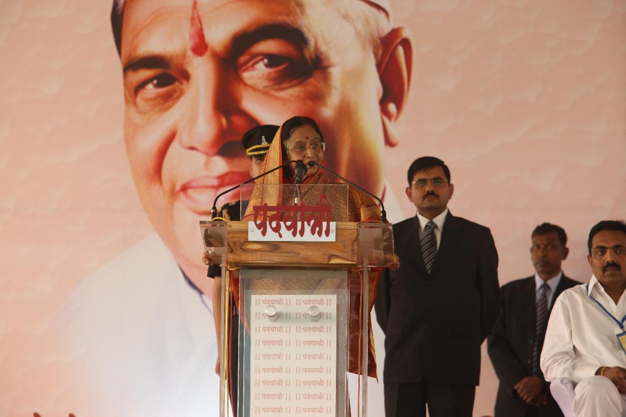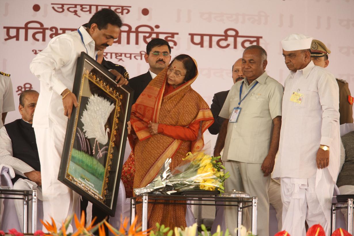 | Caption: | The President of India, Smt Pratibha Devisingh Patil at the Memorial of the Late Shri Rajarambapu Patil at Kasegaon in Sangli District of Maharashtra on Feb 27, 2010 |
