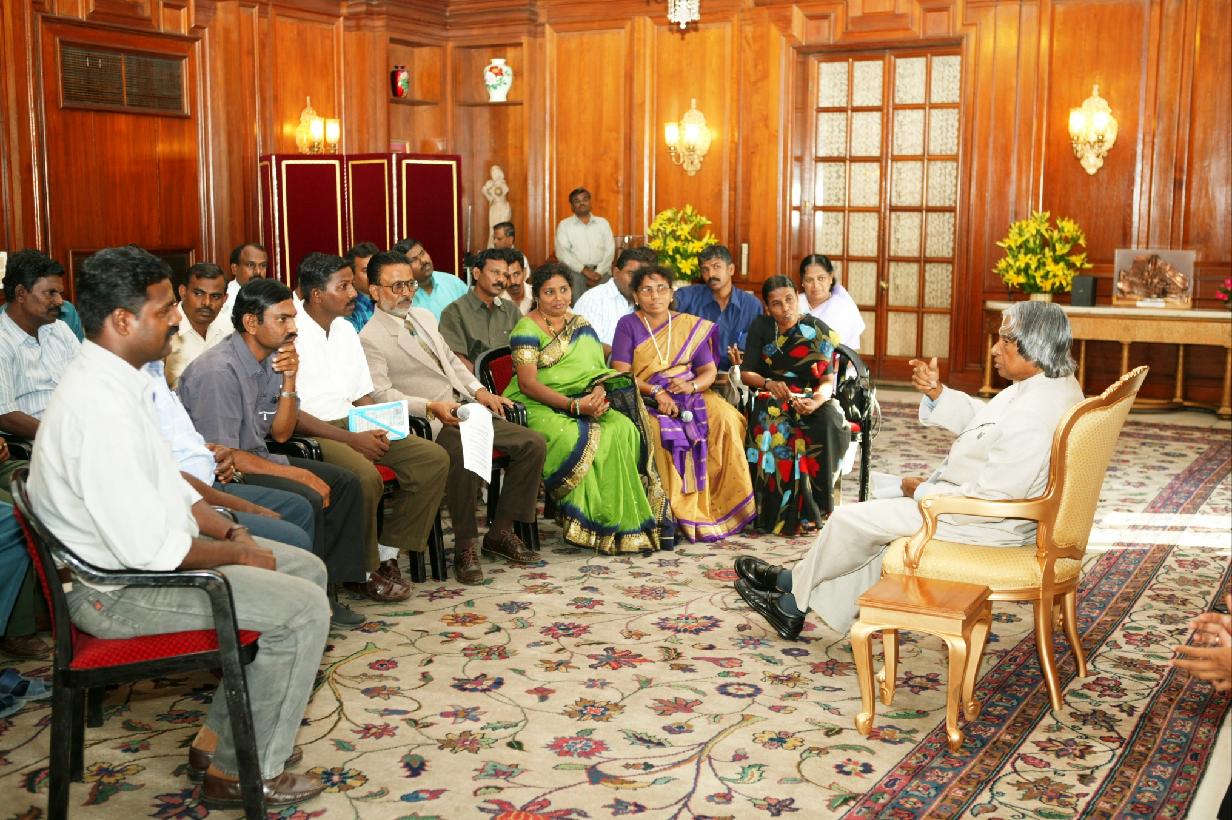 | Caption: | The Teachers from Ambrose Higher Secondary School Megnanpuram and Schaffter Higher Secondary School calling on the President of India, Dr A P J Abdul Kalam at the Committee Room of Rashtrapati Bhavan in New Delhi on Sep 30, 2004 |