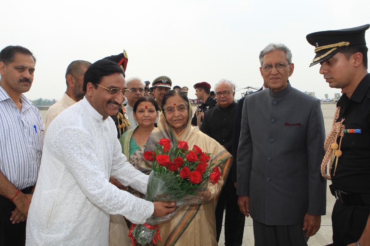 | Caption: | The President of India, Smt Pratibha Devisingh Patil before departure from Dehradun Jolly Grant Airport in Uttarakhand on July 05, 2009 |