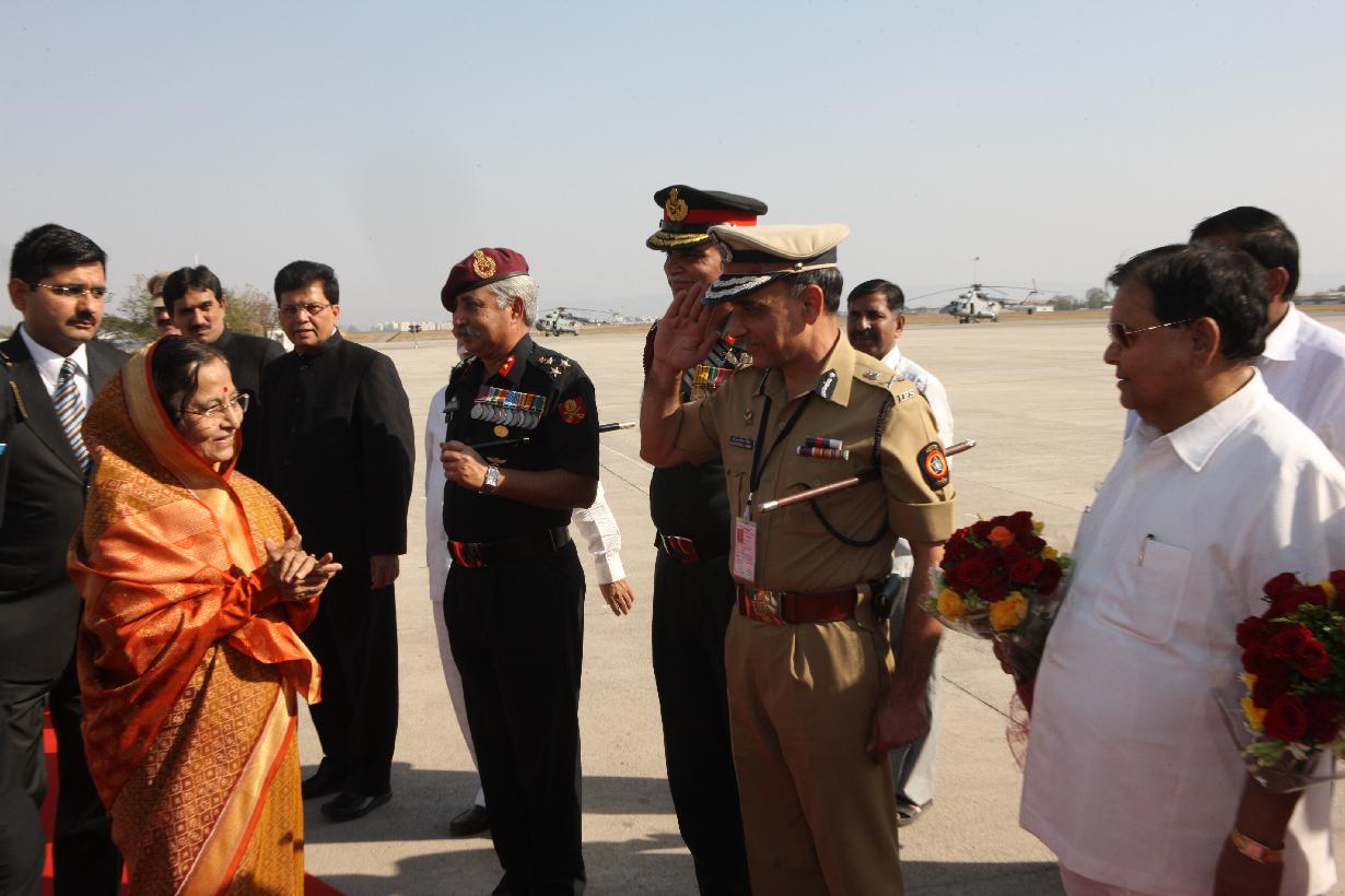 | Caption: | The President of India, Smt Pratibha Devisingh Patil before departure from Pune Airport in Maharashtra on Feb 27, 2010 |