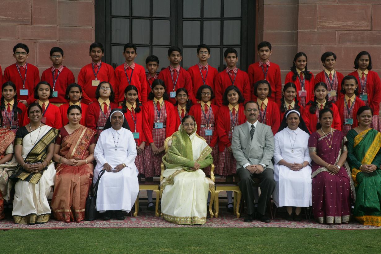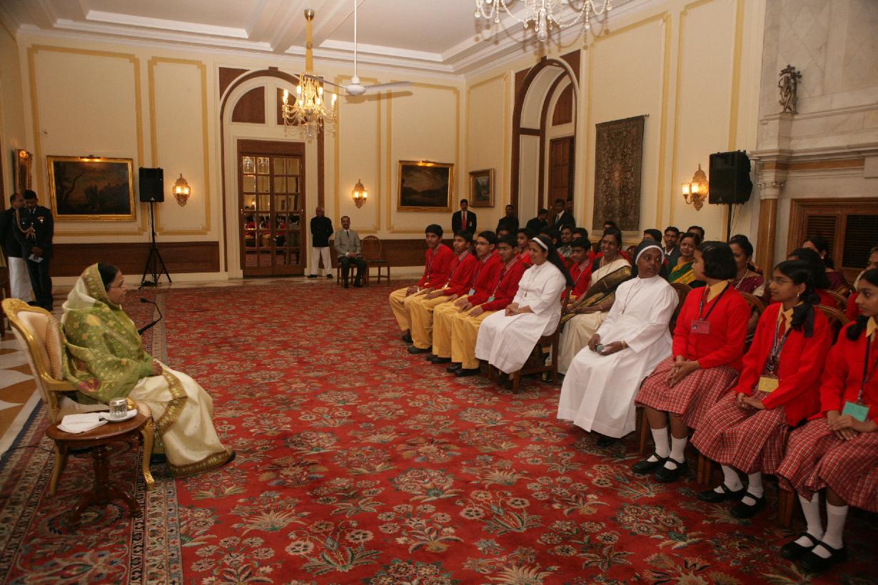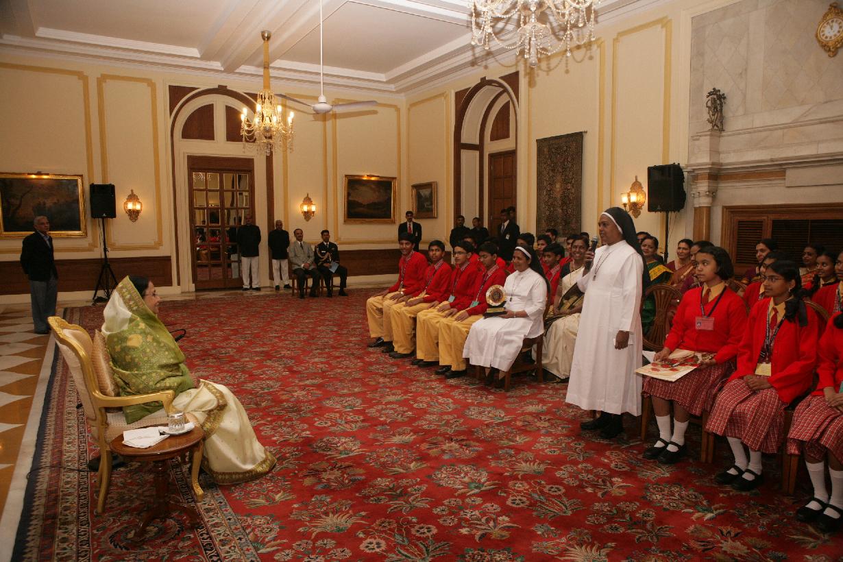 | Caption: | The President of India, Smt Pratibha Devisingh Patil interacting with Students of St Joseph's Convent Senior Secondary School at Rashtrapati Bhavan in New Delhi on Feb 11, 2010 |
