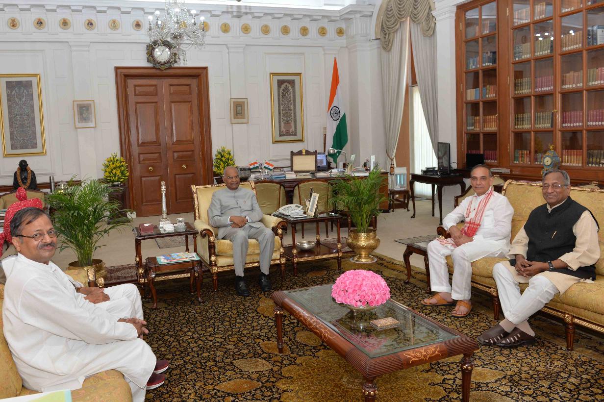 | Caption: | The Minister of Sate for Human Resource Development, Water Resources, River Development and Ganga Rejuvenation, Dr. Satya Pal Singh with others meeting with the President of India, Shri Ram Nath Kovind, at Rashtrapati Bhavan on September 14, 2018. |