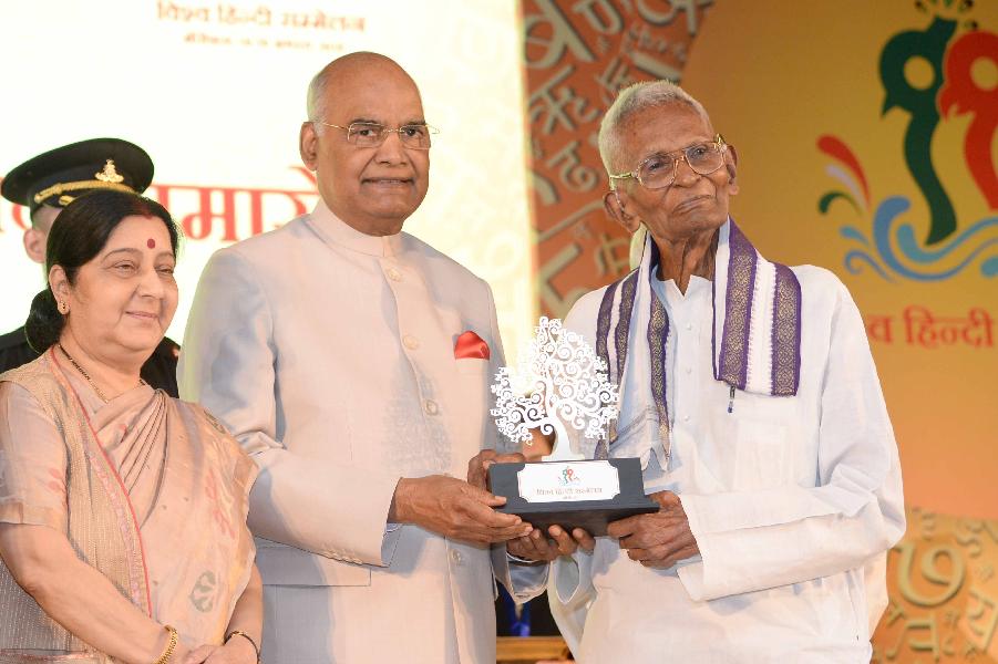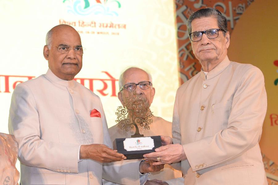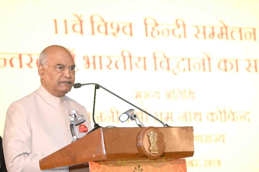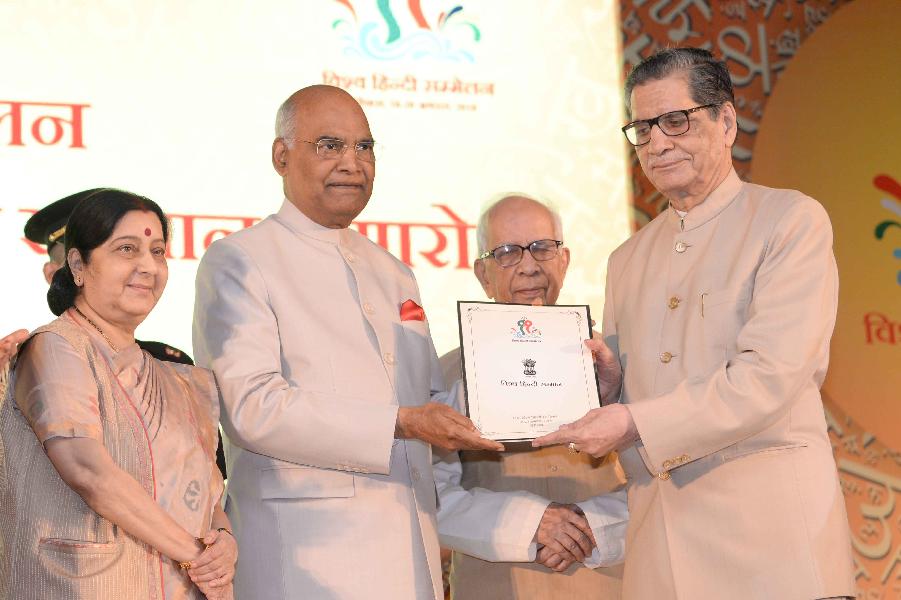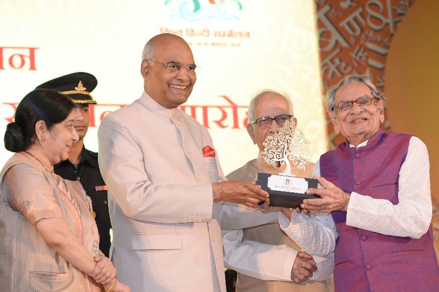 | Caption: | The President of India, Shri Ram Nath Kovind confers awards on Indian Scholars of 11th Vishwa Hindi Sammelan, in New Delhi on September 17, 2018. |