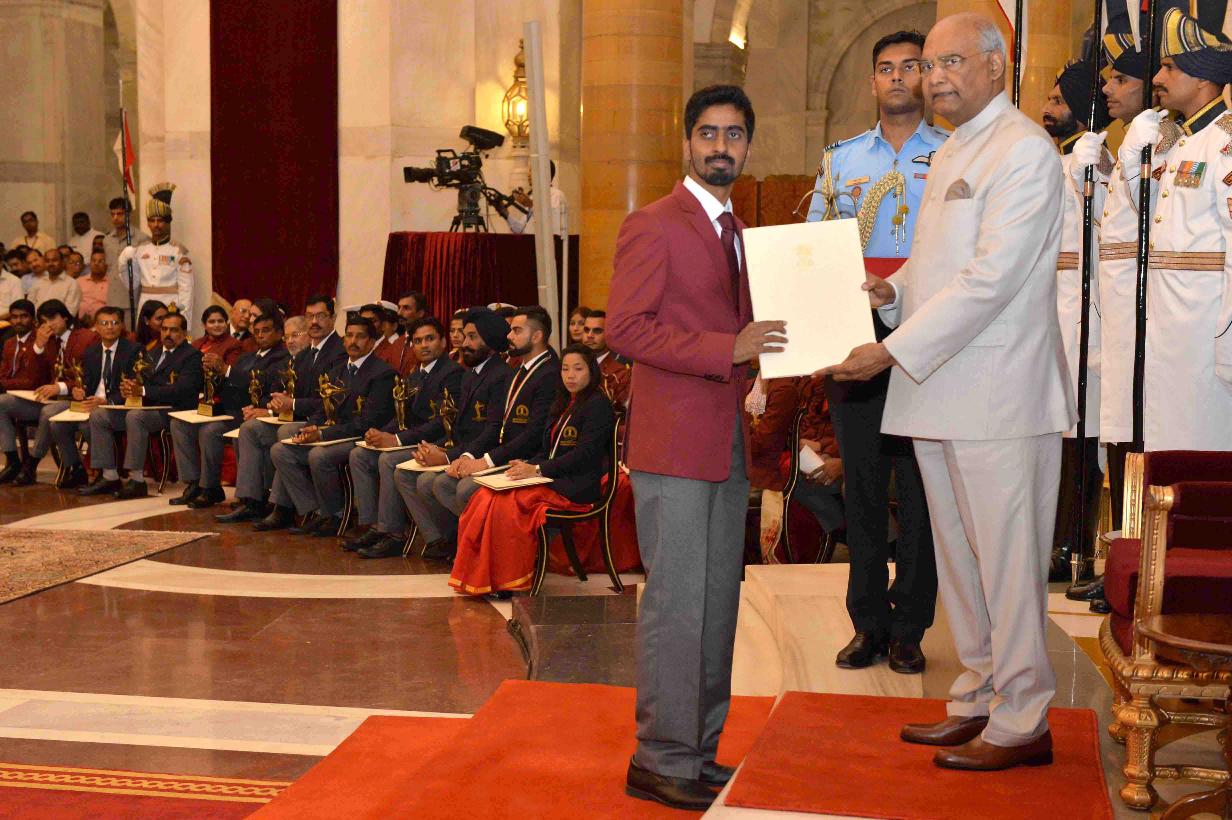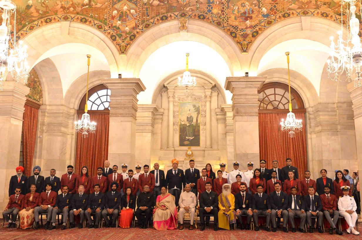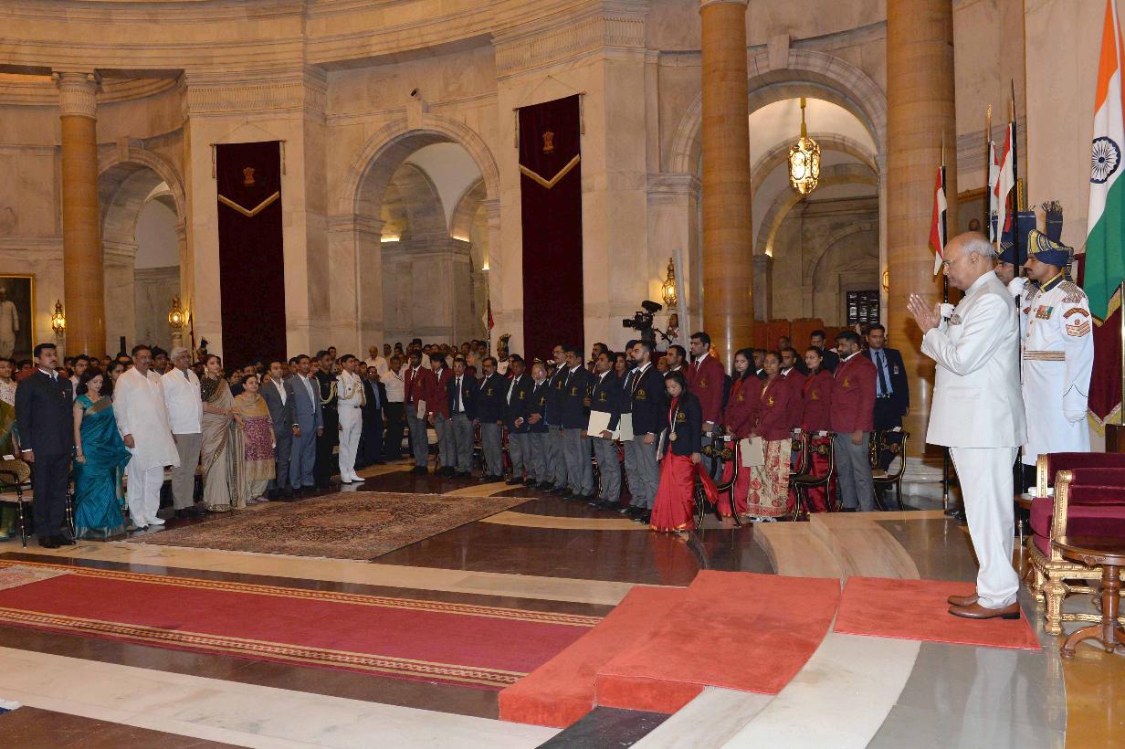 | Caption: | The President of India, Shri Ram Nath Kovind presenting the Rajiv Gandhi Khel Ratna Awards, Dronacharya Awards, Arjuna Awards, Dhyan Chand Awards, Tenzing Norgay National Adventure Awards, Maulana Abul Kalam Azad Trophy and Rashtriya Khel Protsahan Puraskars, at the National Sports & Adventure Awards function, at Rashtrapati Bhavan on September 25, 2018. |