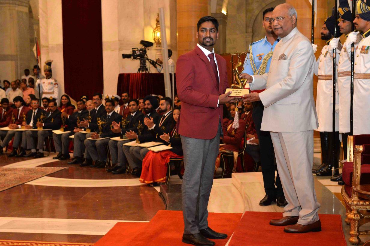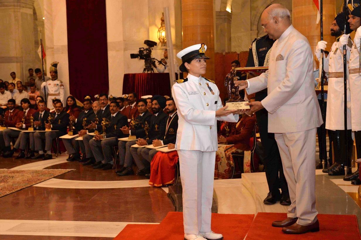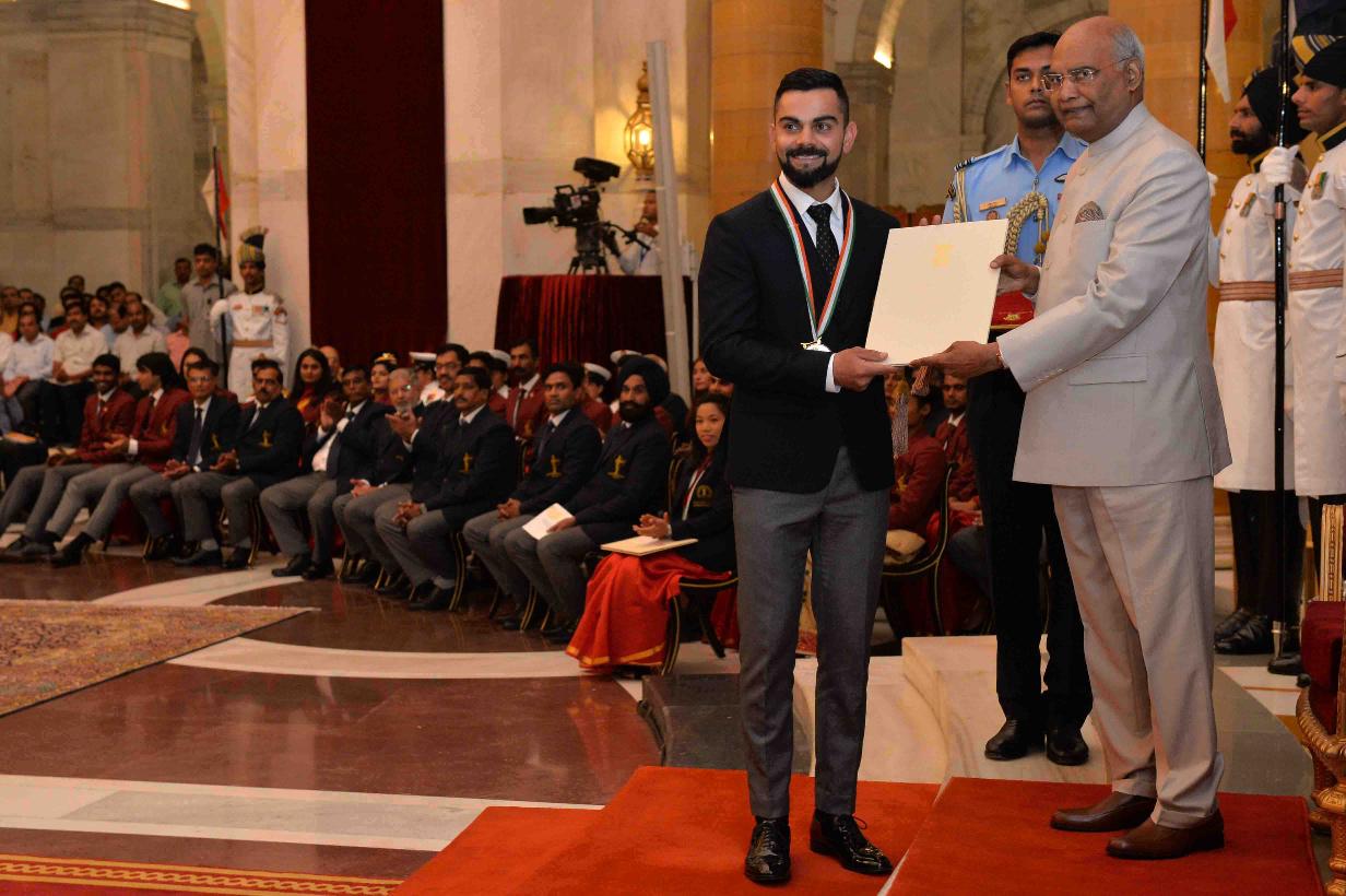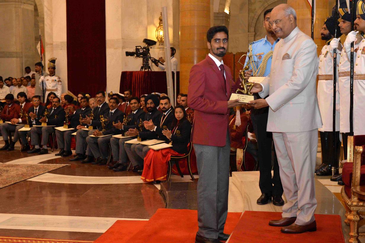 | Caption: | The President of India, Shri Ram Nath Kovind presenting the Rajiv Gandhi Khel Ratna Awards, Dronacharya Awards, Arjuna Awards, Dhyan Chand Awards, Tenzing Norgay National Adventure Awards, Maulana Abul Kalam Azad Trophy and Rashtriya Khel Protsahan Puraskars, at the National Sports & Adventure Awards function, at Rashtrapati Bhavan on September 25, 2018. |