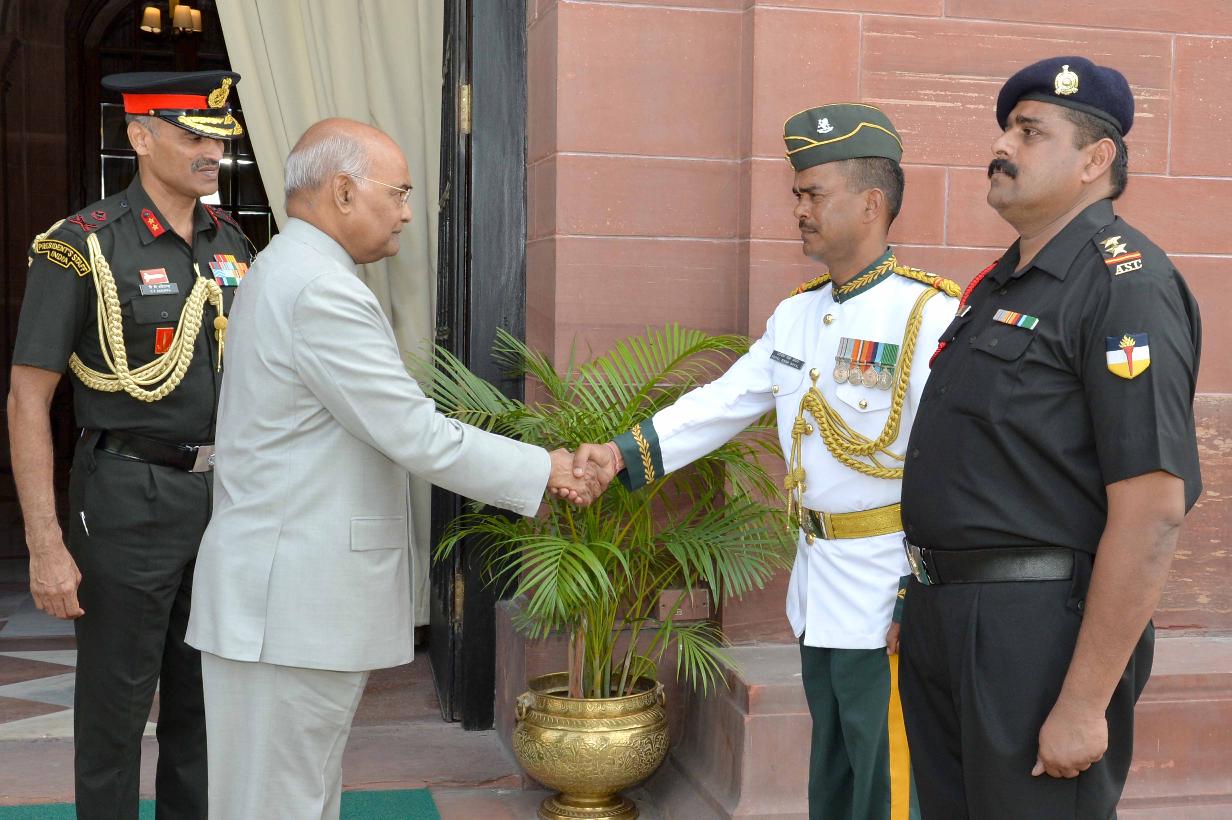 | Caption: | The President of India, Shri Ram Nath Kovind with the Military Band of the Kumaon Regiment Centre, at Rashtrapati Bhavan on September 27, 2018. |
