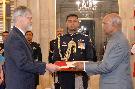 | Caption: | The Ambassador-designate of the Republic of Slovenia, H.E. Dr. Marjan Cencen presenting his credentials to the President of India, Shri Ram Nath Kovind, at Rashtrapati Bhavan on November 27, 2019. |
