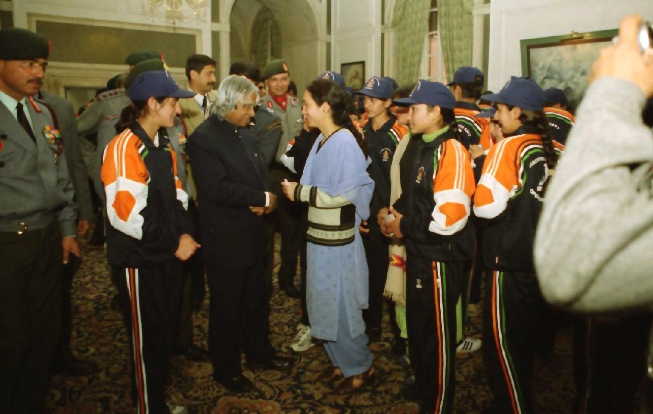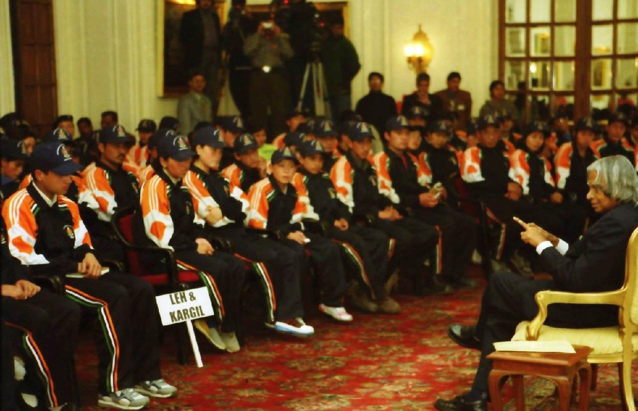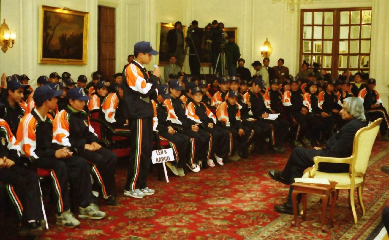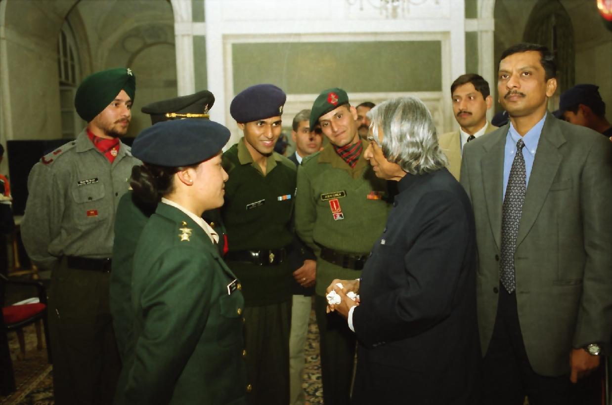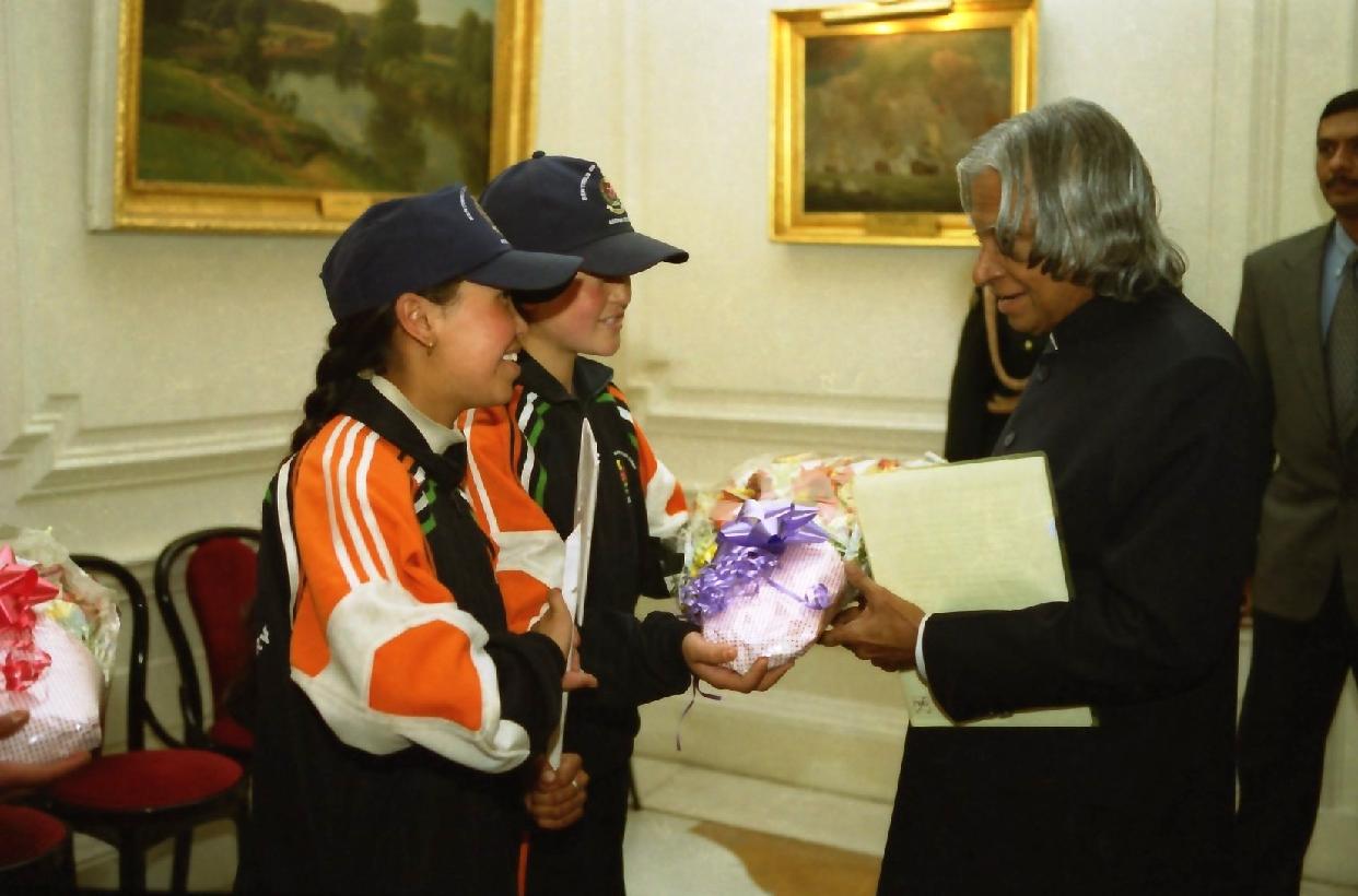 | Caption: | The Student Participants of OP SAMPARK Student Excursion to North East organized by the Directorate General Assam Rifles calling on the President of India, Dr A P J Abdul Kalam at the Yellow Drawing Room of Rashtrapati Bhavan in New Delhi on Dec 31, 2003 |