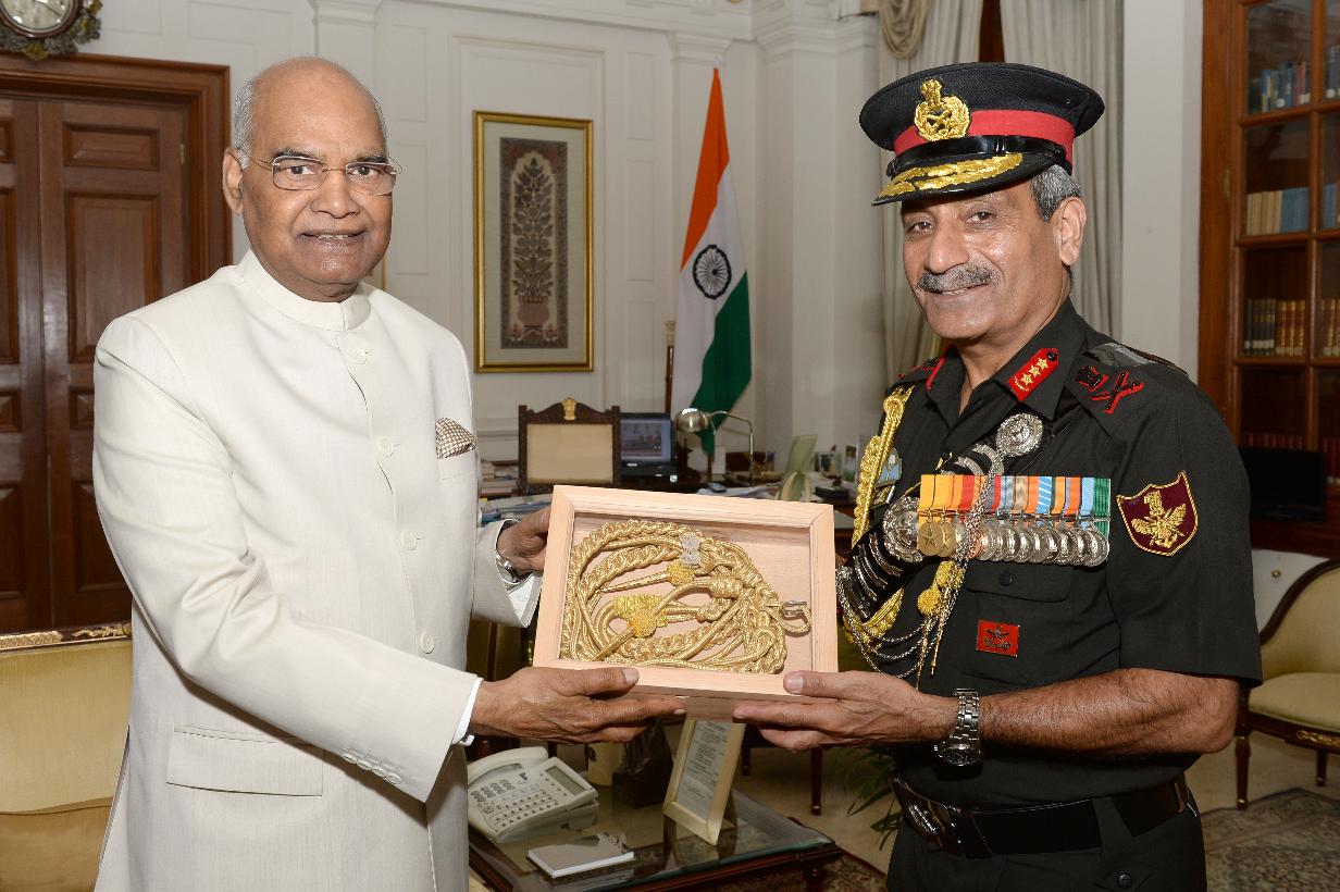 | Caption: | Lt. Gen. S.K. Dua, Chief of Integrated Defence Staff and Hony ADC to the President along with his wife Smt. Aradhana Dua meeting with the President of India, Shri Ram Nath Kovind, at Rashtrapati Bhavan on October 27, 2018. |