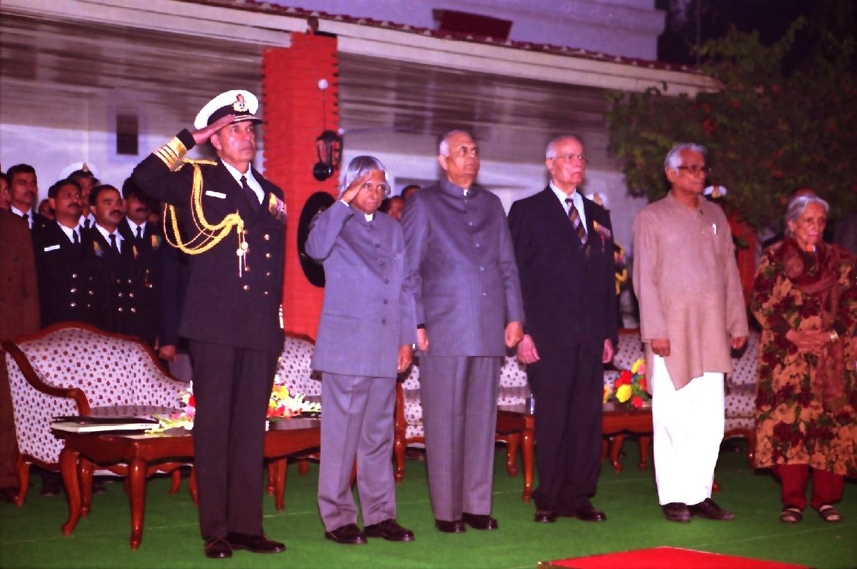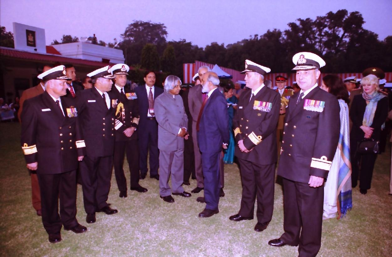 | Caption: | The President of India, Dr A P J Abdul Kalam at the Reception Hosted by the Chief of the Naval Staff at Navy House, 12, Rajaji Marg in New Delhi on Dec 04, 2003 |
