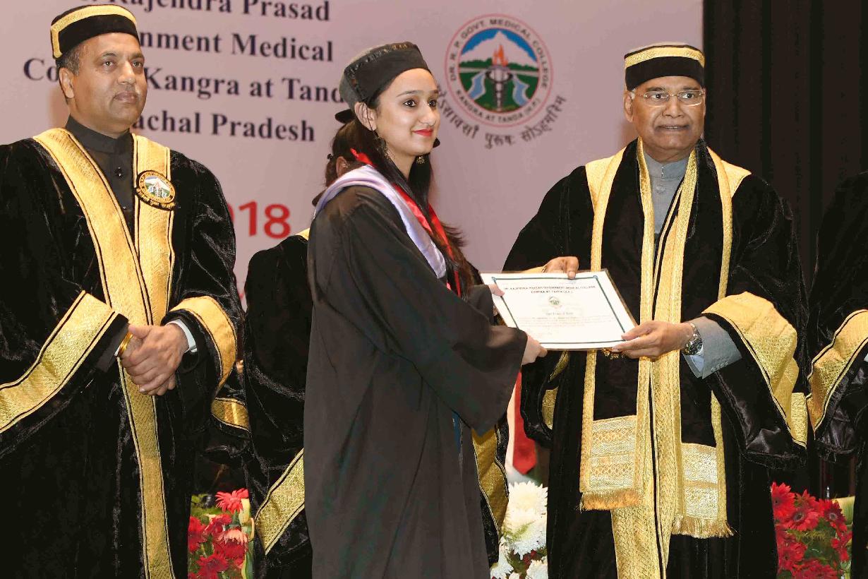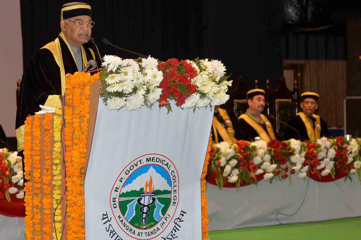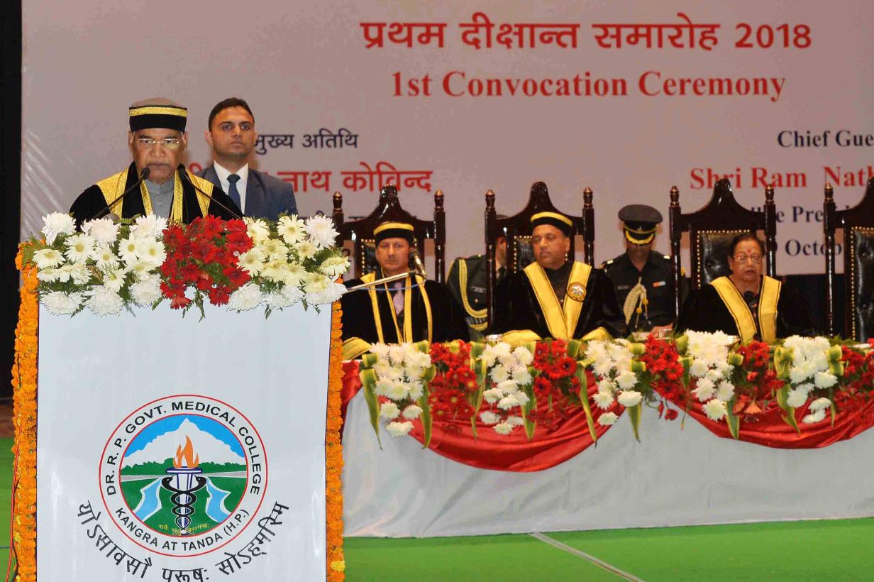 | Caption: | The President of India, Shri Ram Nath Kovind addressing the 1st Convocation of Dr. Rajendra Prasad Government Medical College and presenting the degree certificates to the students, at Kangra, in Himachal Pradesh on October 29, 2018. |