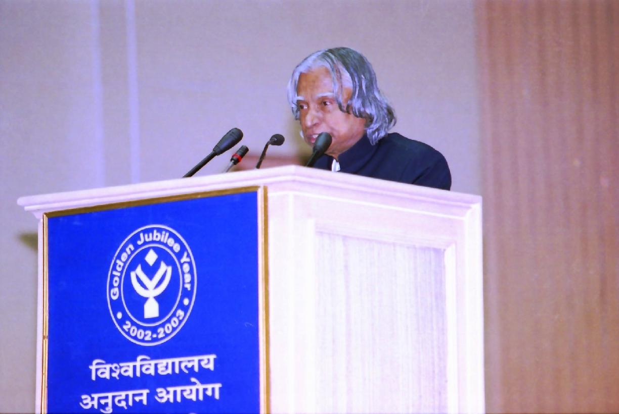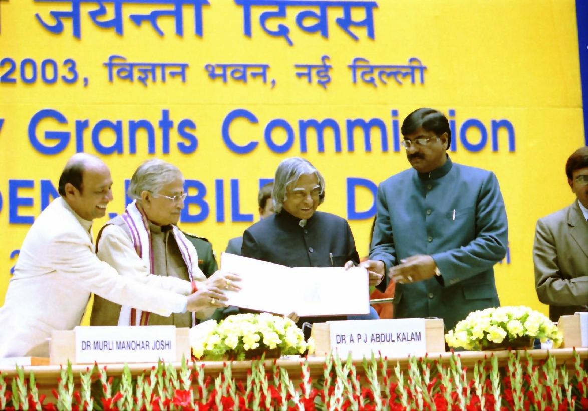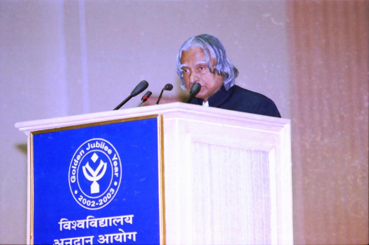 | Caption: | The President of India, Dr A P J Abdul Kalam participating in the Golden Jubilee Celebration of the University Grants Commission at Vigyan Bhavan in New Delhi on Dec 28, 2003 |