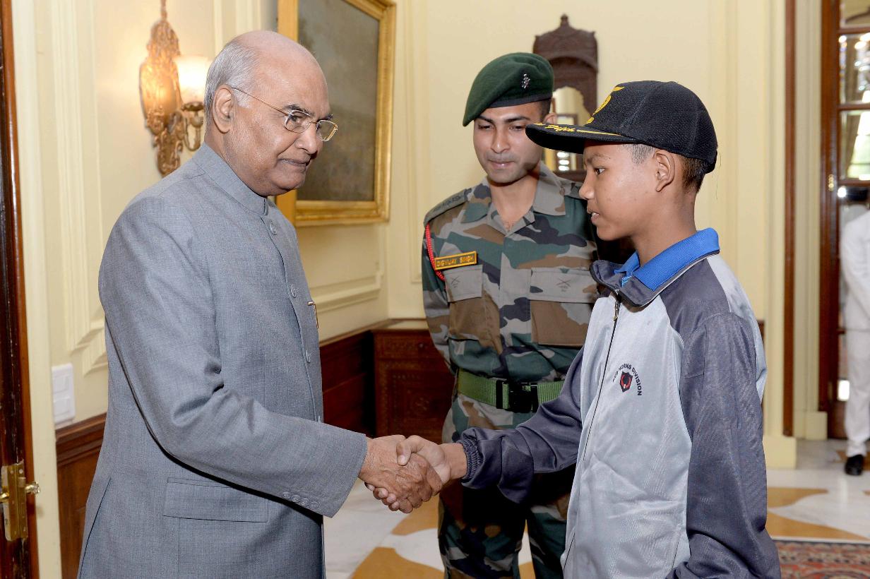 | Caption: | The President of India, Shri Ram Nath Kovind meeting with the students and teachers from Chirang district of Assam attending National Integration Tour, organised by 5 GARH RIF/ HQ 21 Mtn Div/HQ 4 Corps of Eastern Command, at Rashtrapati Bhavan on November 08, 2018. |