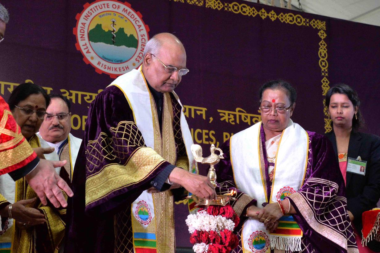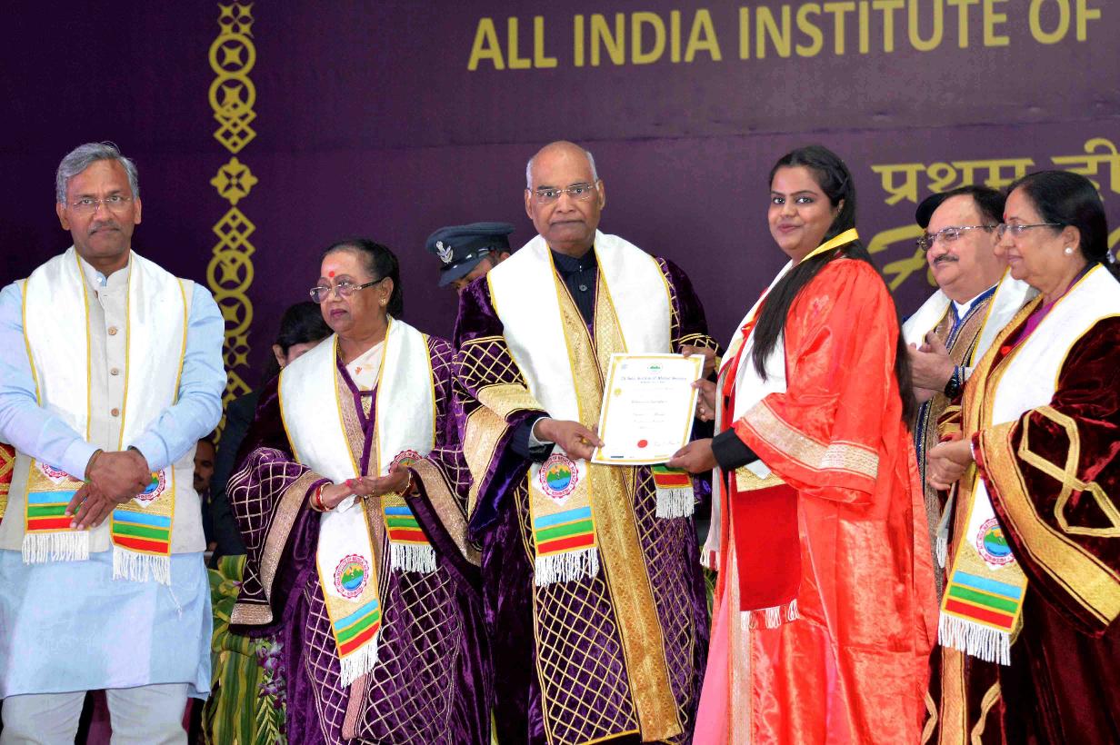 | Caption: | The President of India, Shri Ram Nath Kovind addressing the first convocation of AIIMS, Rishikesh and presenting certificates to the MBBS students, at Rishikesh, in Uttarakhand on November 03, 2018. |