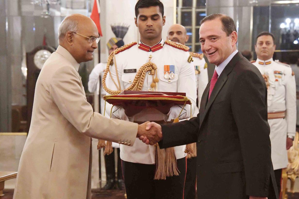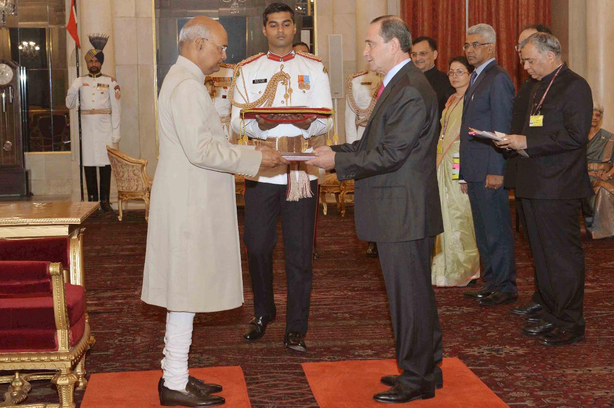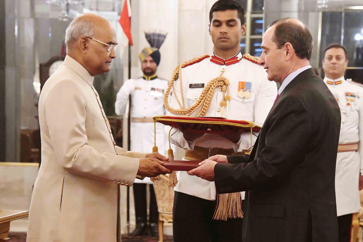 | Caption: | The Ambassador-designate of the Hashemite Kingdom of Jordan, H.E. Mr. Mohamed Salam Jameel A.F.EI-Kayed presenting his credentials to the President of India, Shri Ram Nath Kovind, at Rashtrapati Bhavan on November 13, 2018. |
