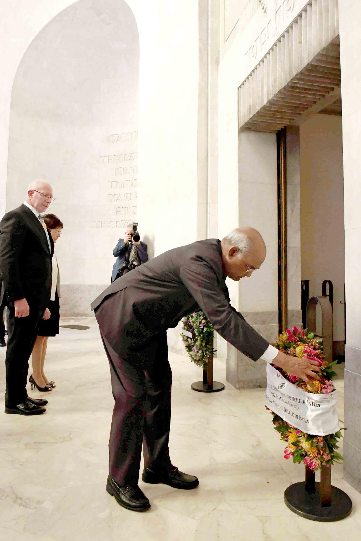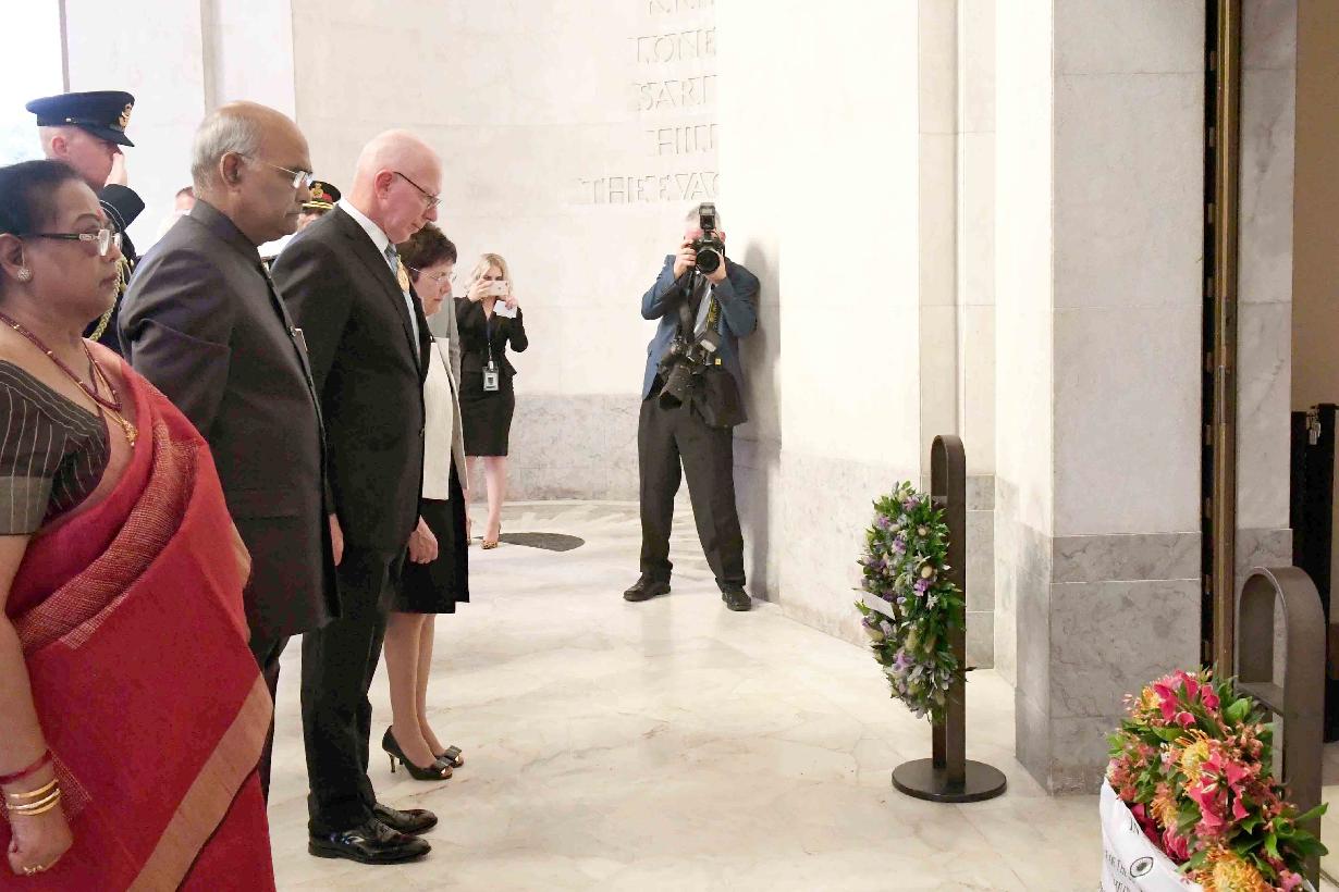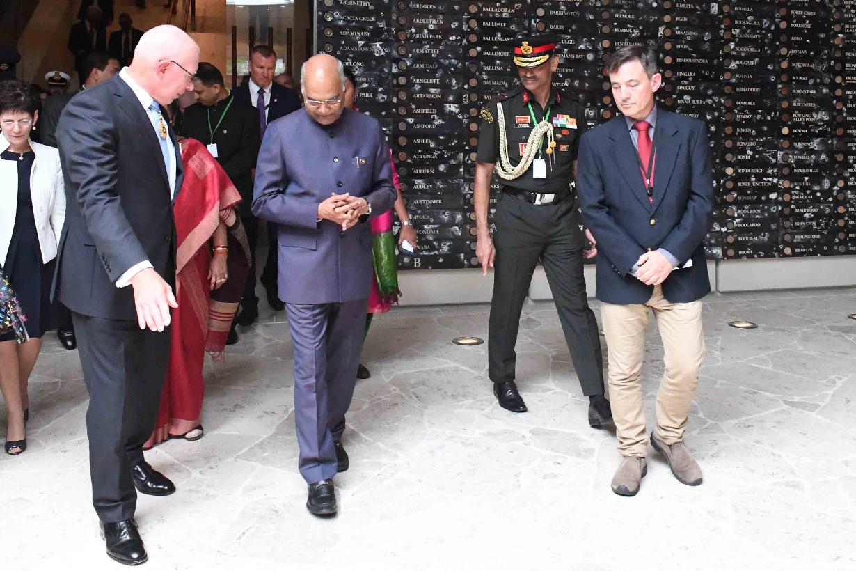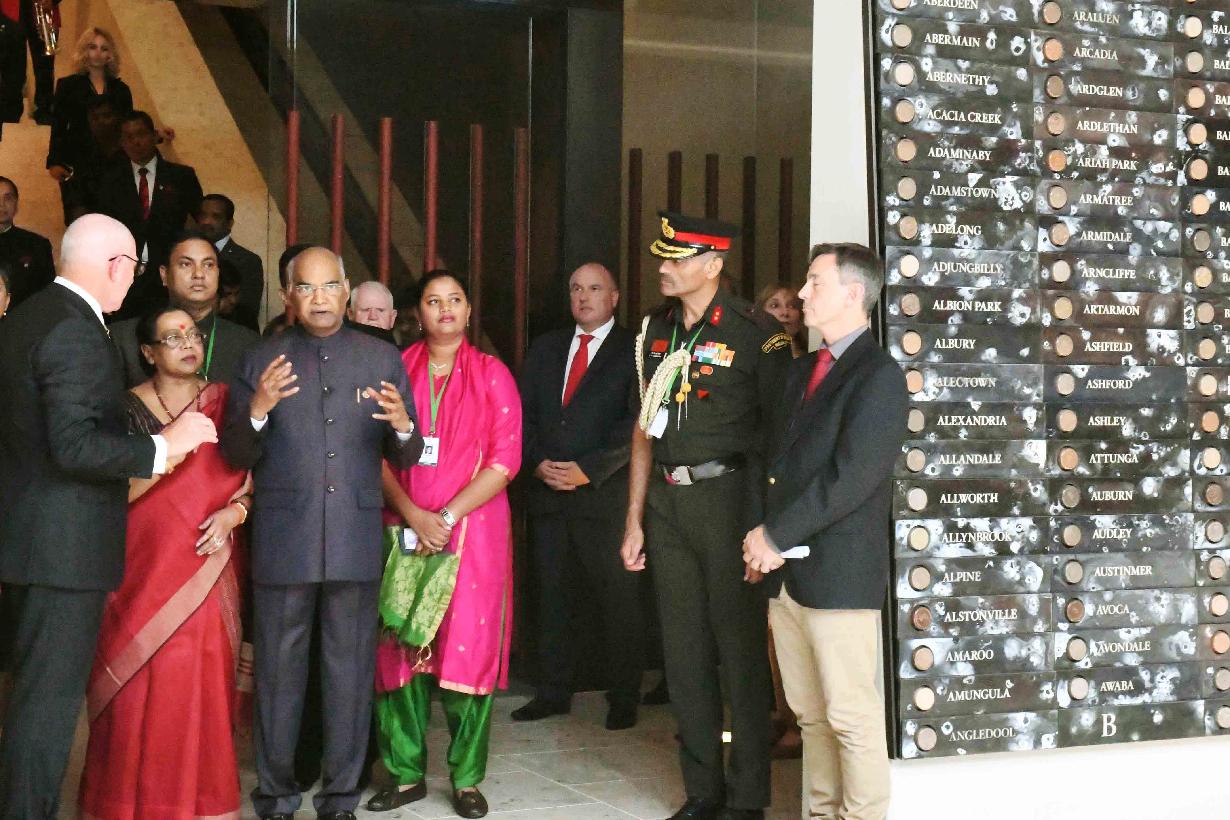 | Caption: | The President of India, Shri Ram Nath Kovind laying wreath at the Anzac War Memorial and visiting the Museum, at Hyde Park, in Sydney on November 21, 2018. |