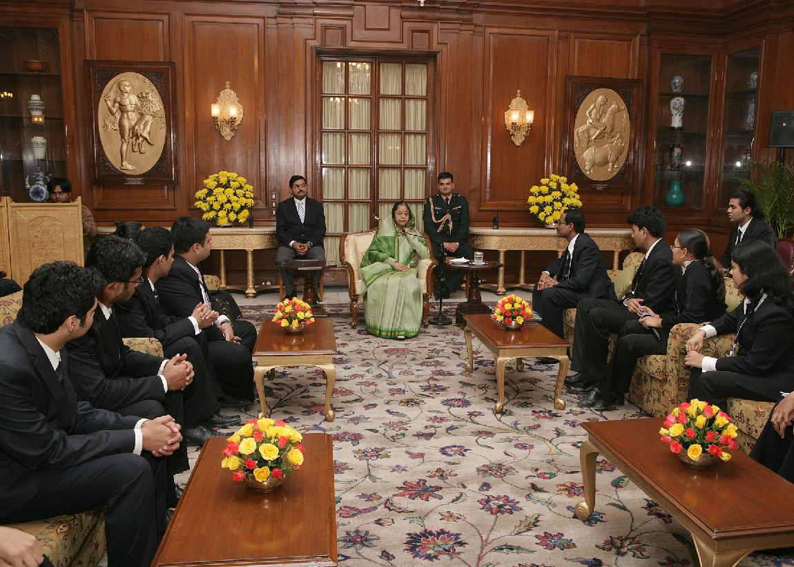 | Caption: | The President of India, Smt Pratibha Devisingh Patil meeting students from the Government Law College of Mumbai Currently on a Study visit to New Delhi at Rashtrapati Bhavan in New Delhi on Dec 11, 2009 |