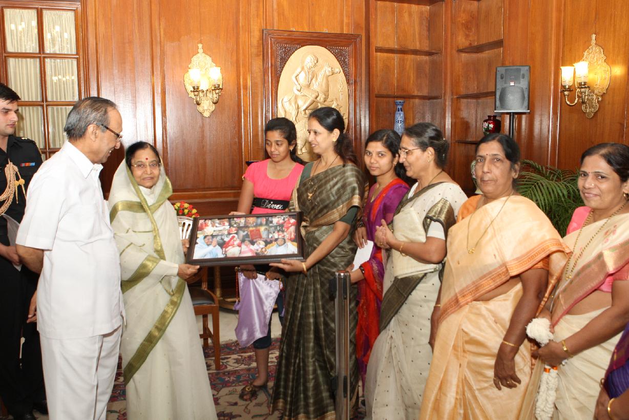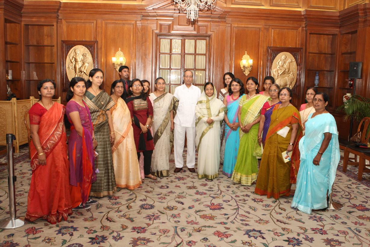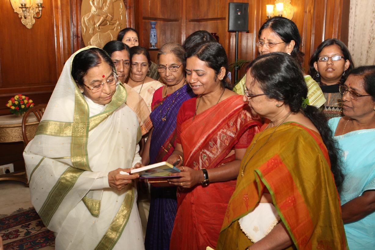 | Caption: | The President of India, Smt Pratibha Devisingh Patil interacting with Smt Sadhana D Gudadhe and others at Rashtrapati Bhavan in New Delhi on April 06, 2009 |