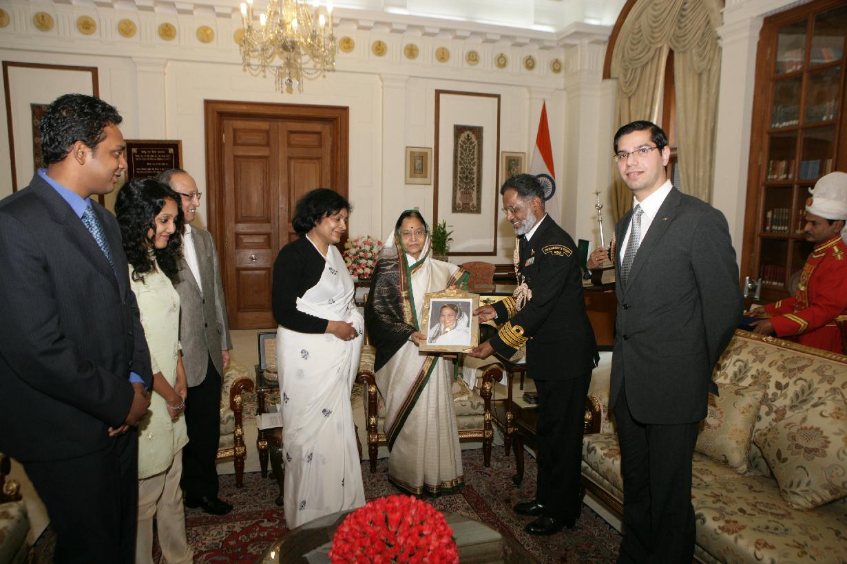 | Caption: | The President of India, Smt Pratibha Devisingh Patil at a Farewell Call by CPH (Comptroller to the President Household), Capt George Abraham at Rashtrapati Bhavan in New Delhi on Dec 22, 2009 |