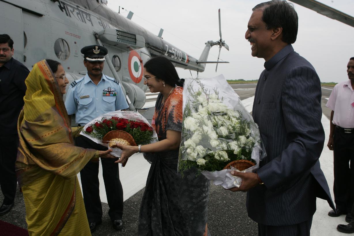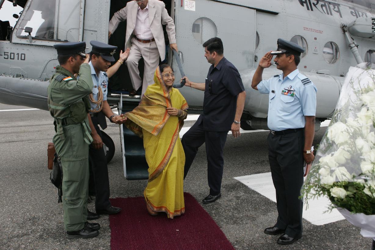 | Caption: | The President of India, Smt Pratibha Devisingh Patil being welcomed by Governor of Lakshadweep, Shri J K Dadoo at Agatti Helipad in Lakshadweep on Dec 27, 2009 |