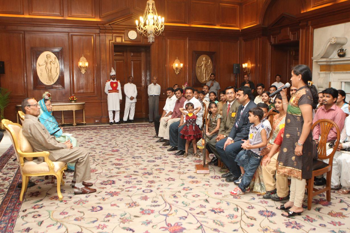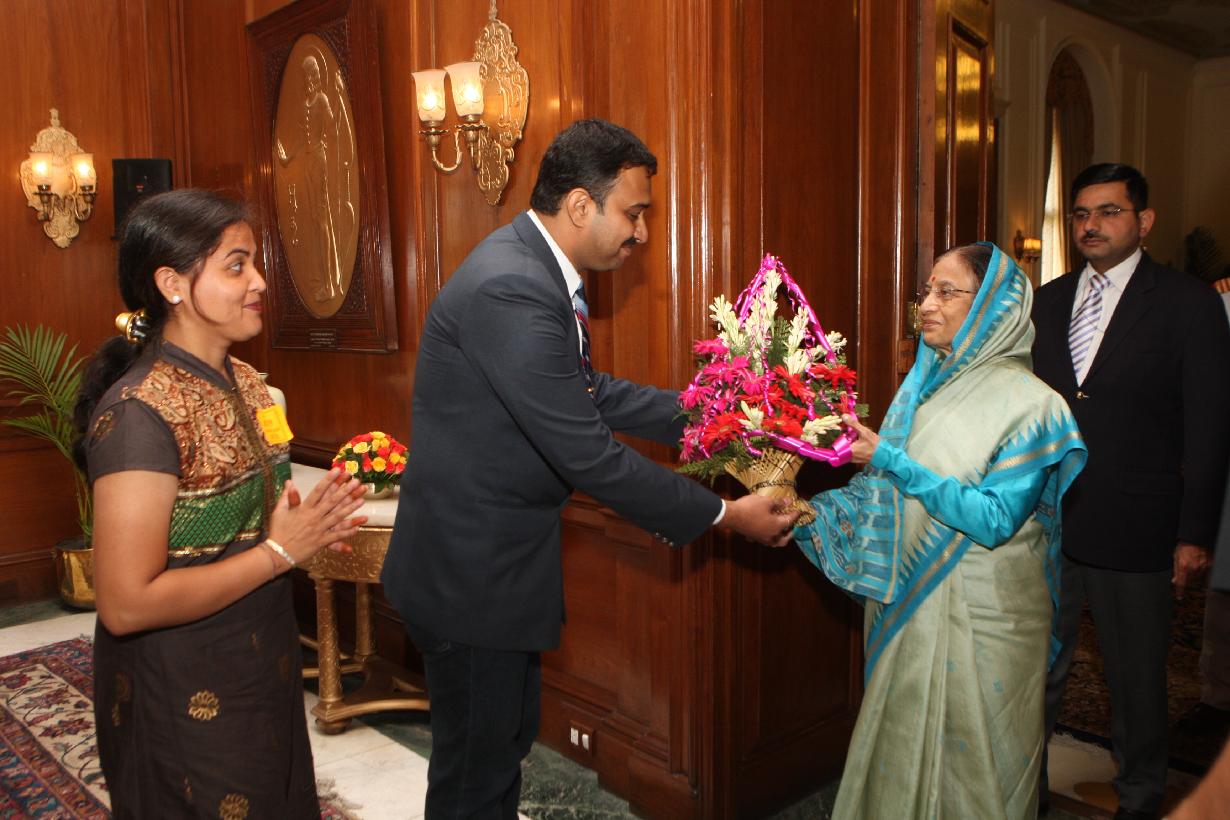 | Caption: | The President of India, Smt Pratibha Devisingh Patil interacting with Shri Prashant Rathi and others at Rashtrapati Bhavan in New Delhi on Aug 20, 2010 |